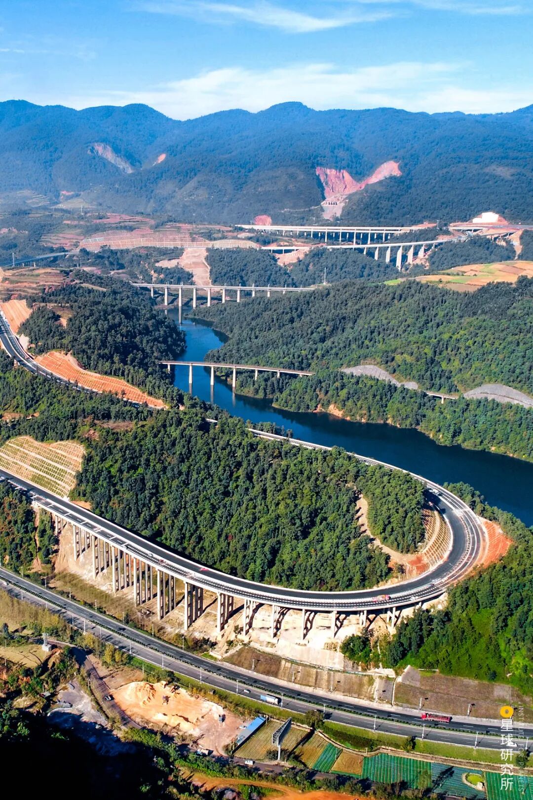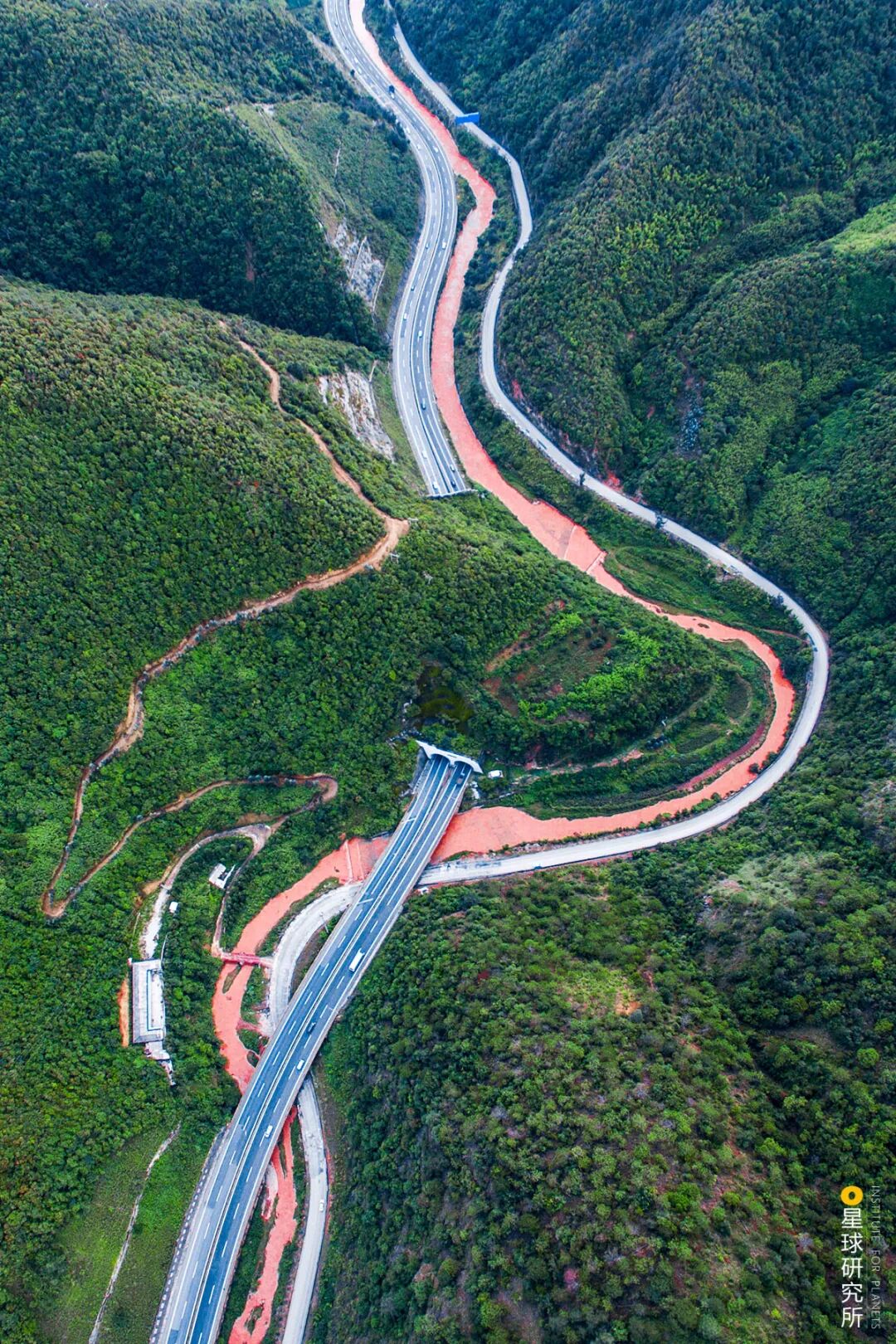 (昆曼高速、昆玉铁路、泛亚铁路、213国道同框,摄影师@黄凯)