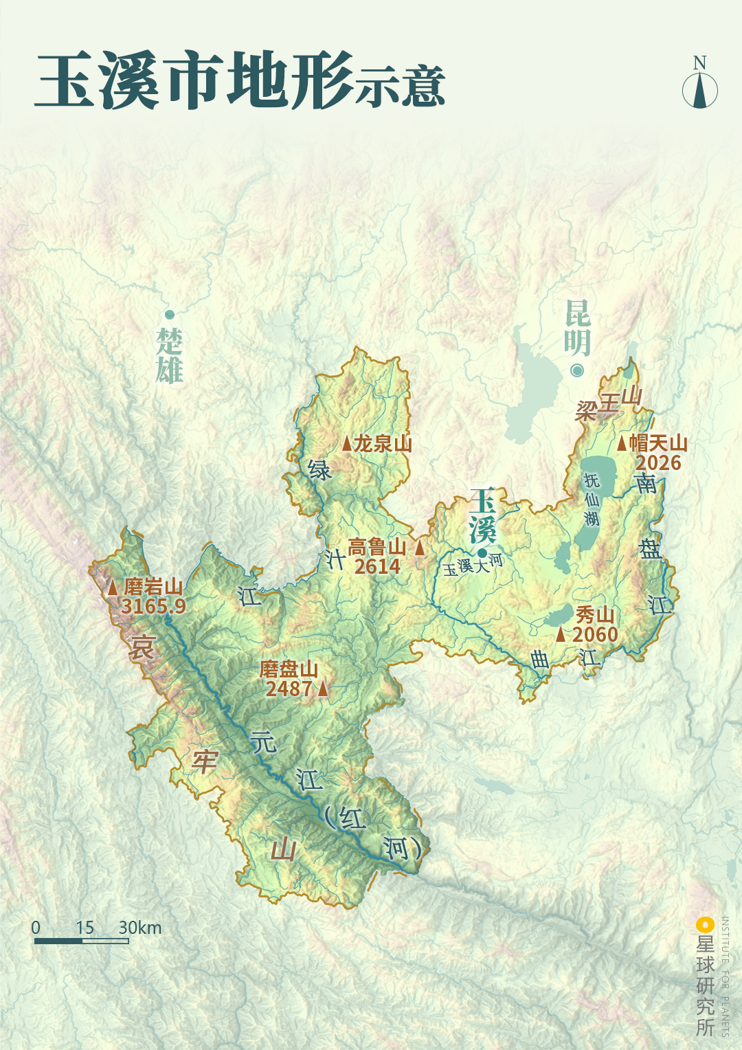 (玉溪市地形示意,制图@陈志浩/星球研究所)