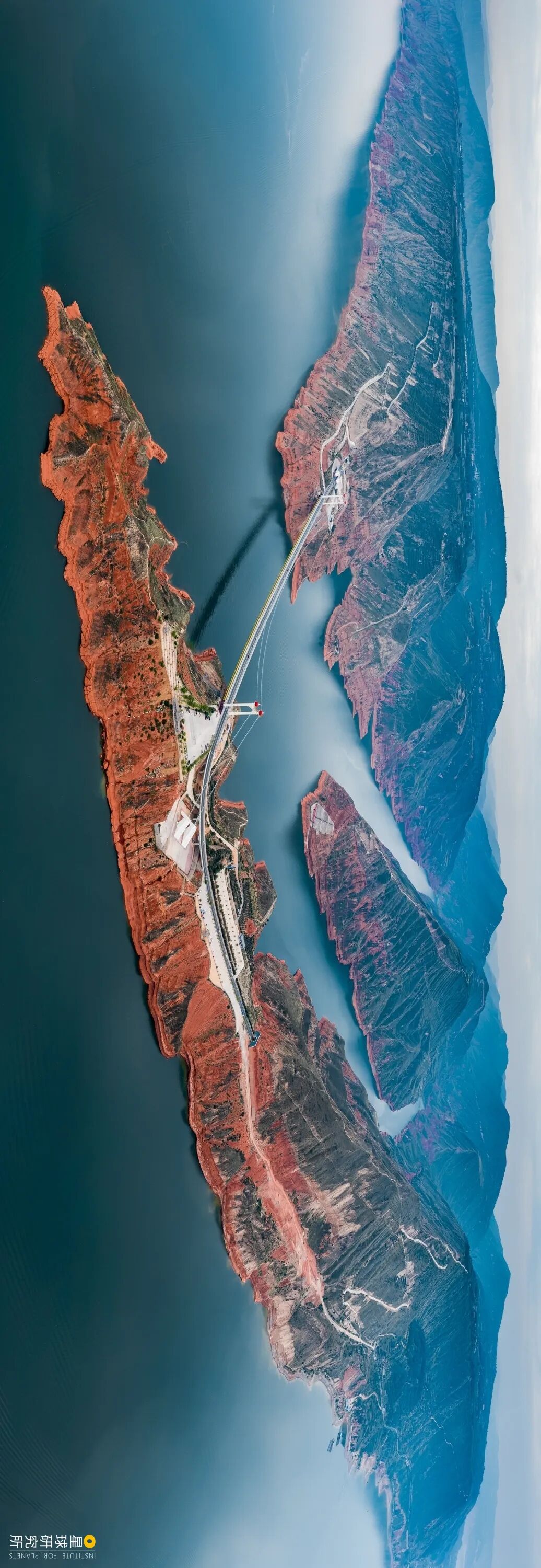 (请横屏观看,临夏境内的刘家峡黄河大桥飞跃天堑,摄影师@郭瑞)