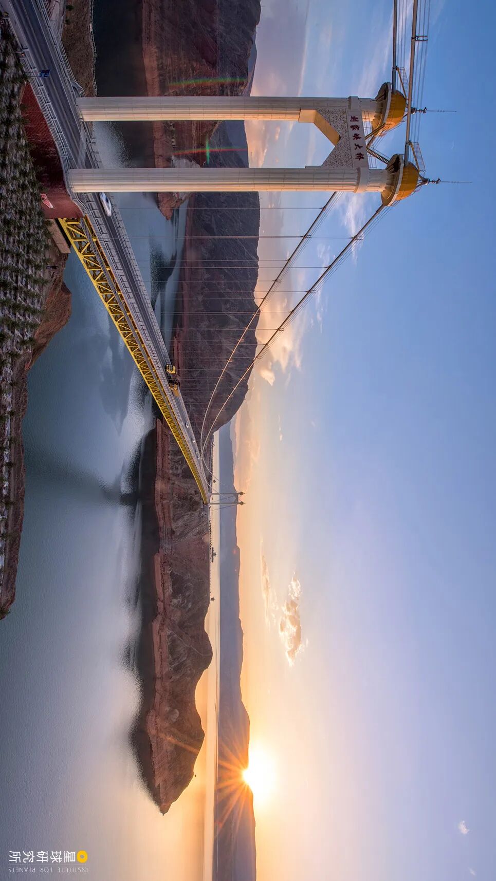 (请横屏观看,夕阳下的刘家峡黄河大桥,摄影师@严天峰)