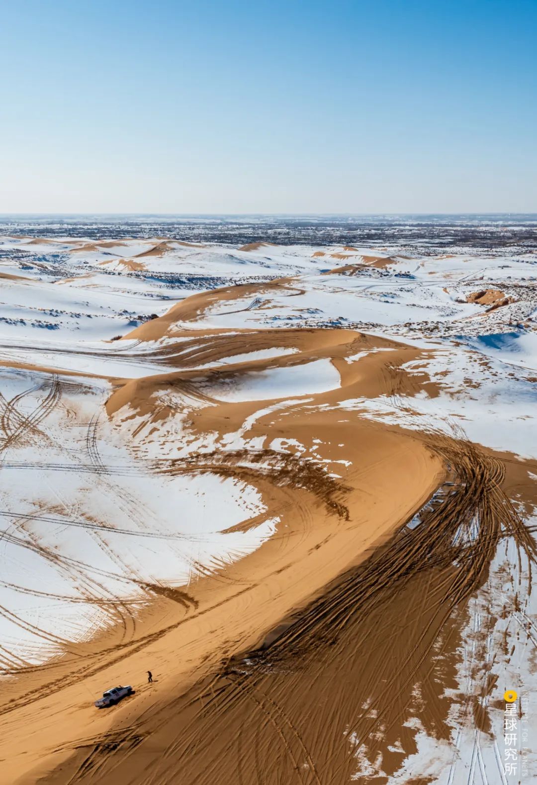 (鄂尔多斯文贡芒哈国家沙漠公园的雪景,摄影师@任世明)