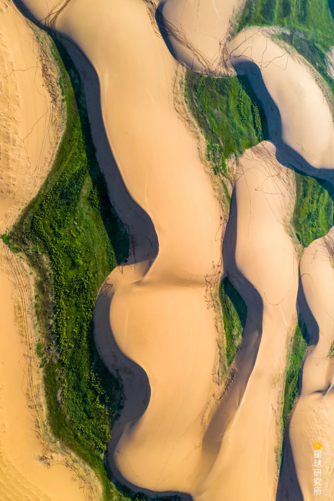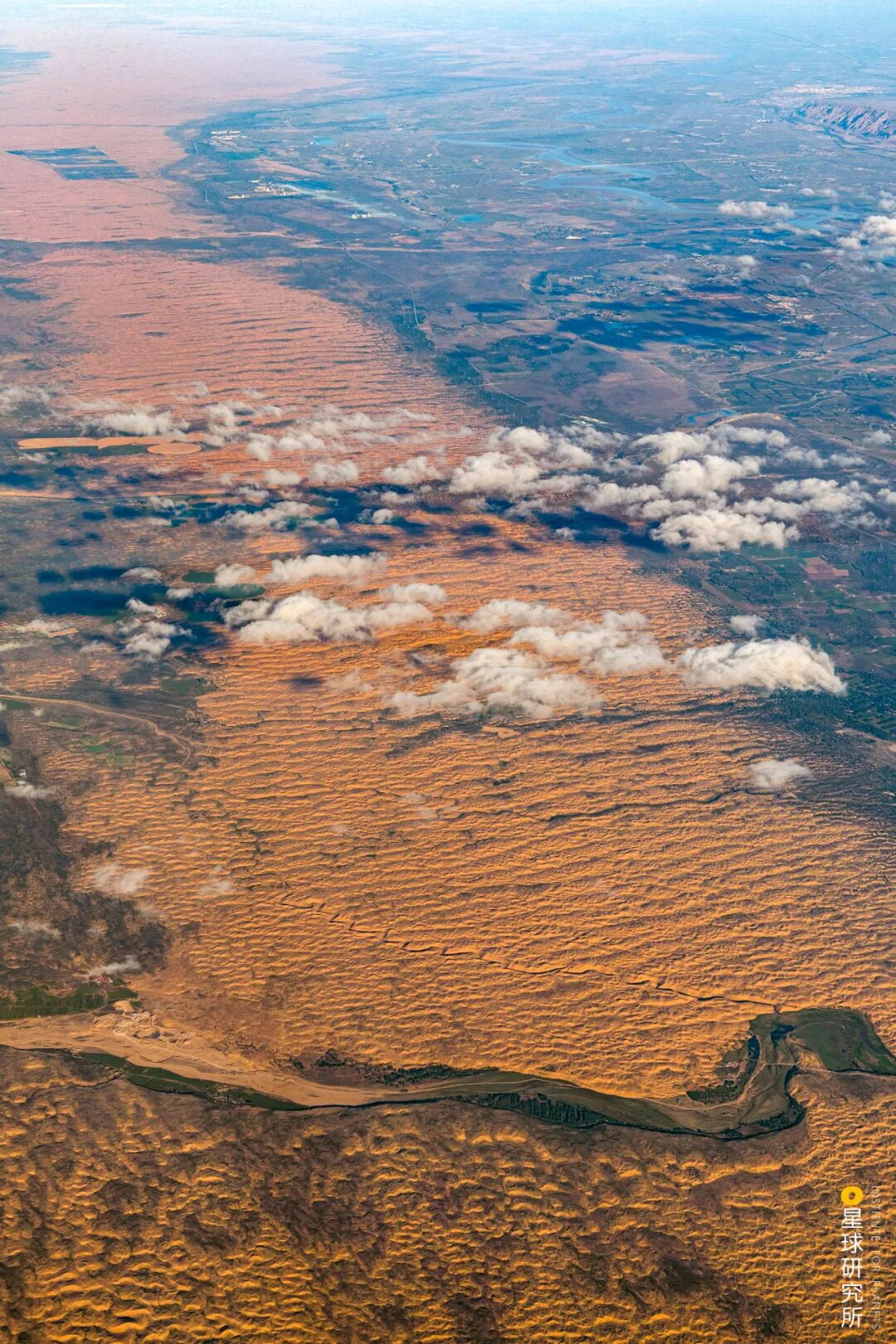 (请横屏观看,黄河与鄂尔多斯高原上的库布齐沙漠,摄影师@陈剑峰)