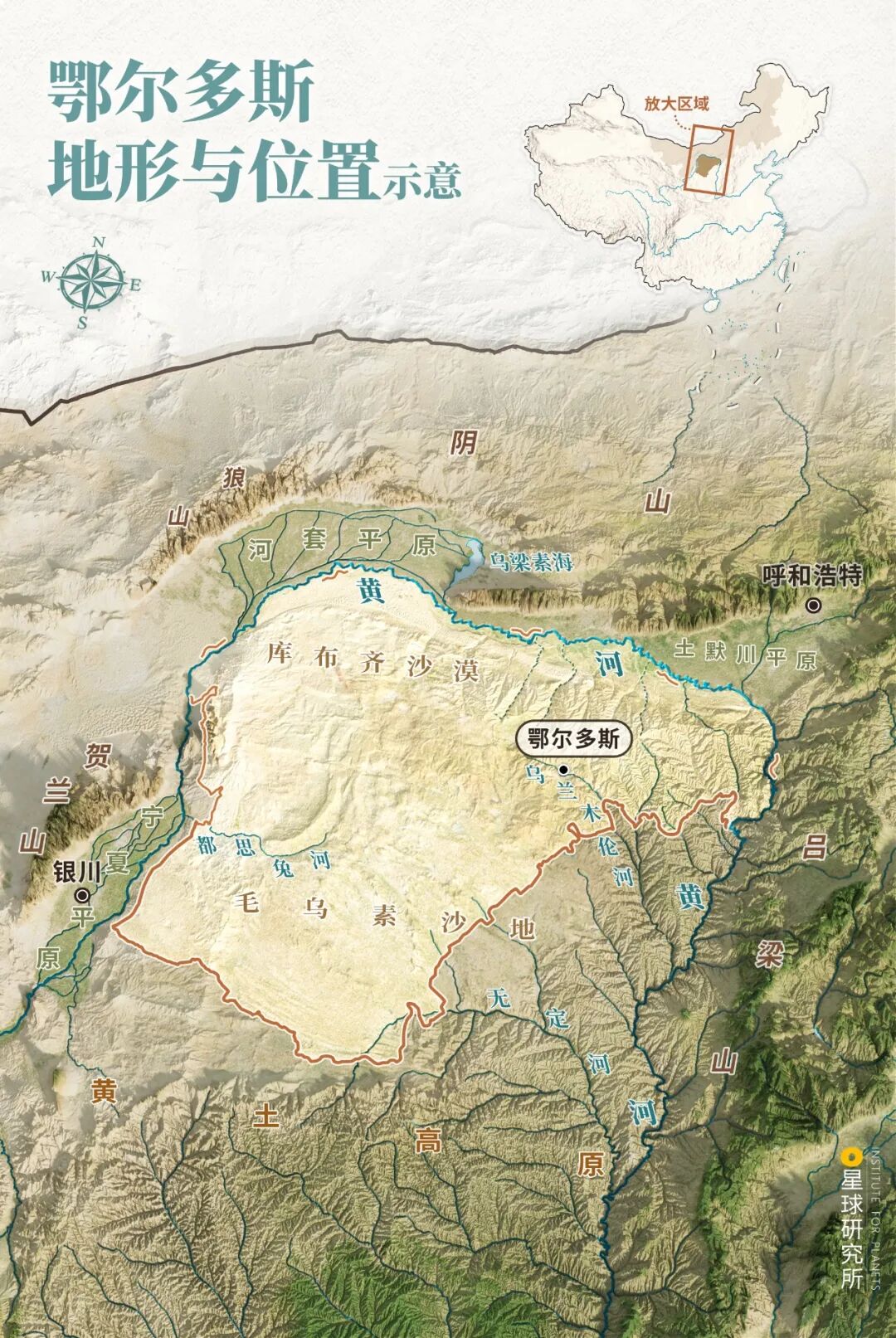 (鄂尔多斯地形与位置示意,制图@陈景逸/星球研究所)