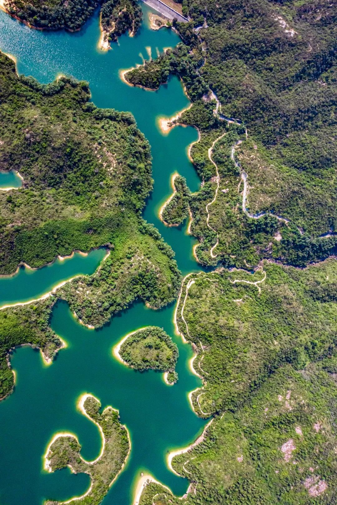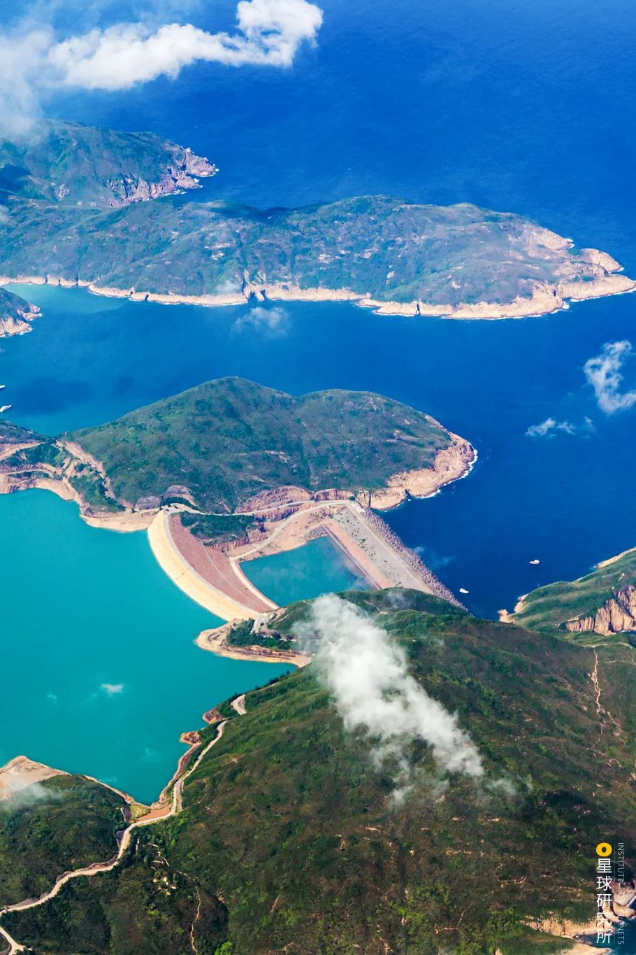 (香港航拍万宜水库,以大坝围封海岸建成,摄影师@余明)