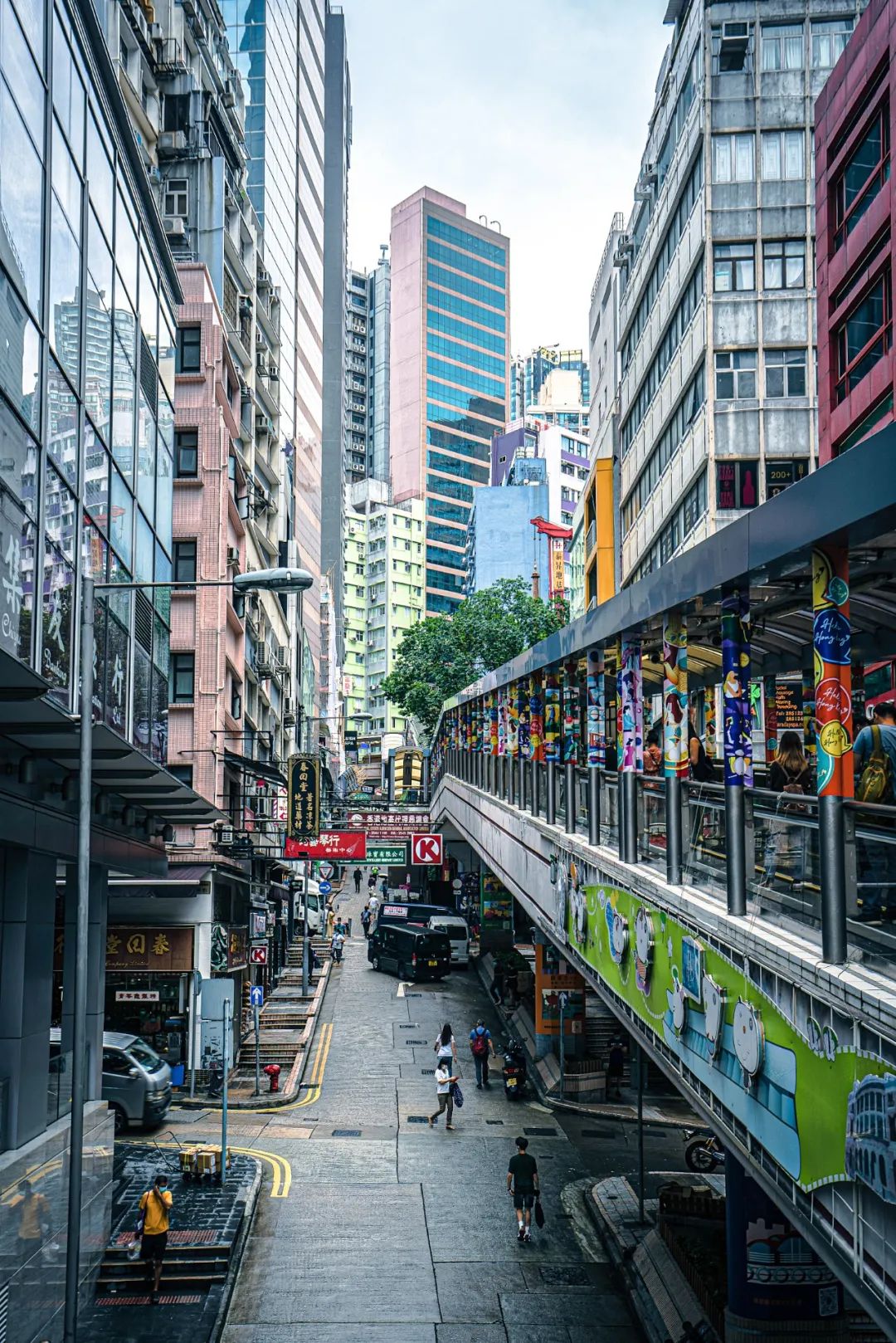 (香港中环半山扶梯,1998年香港是世界上自动扶梯人均占有率第一的城市,图片来源@视觉中国)