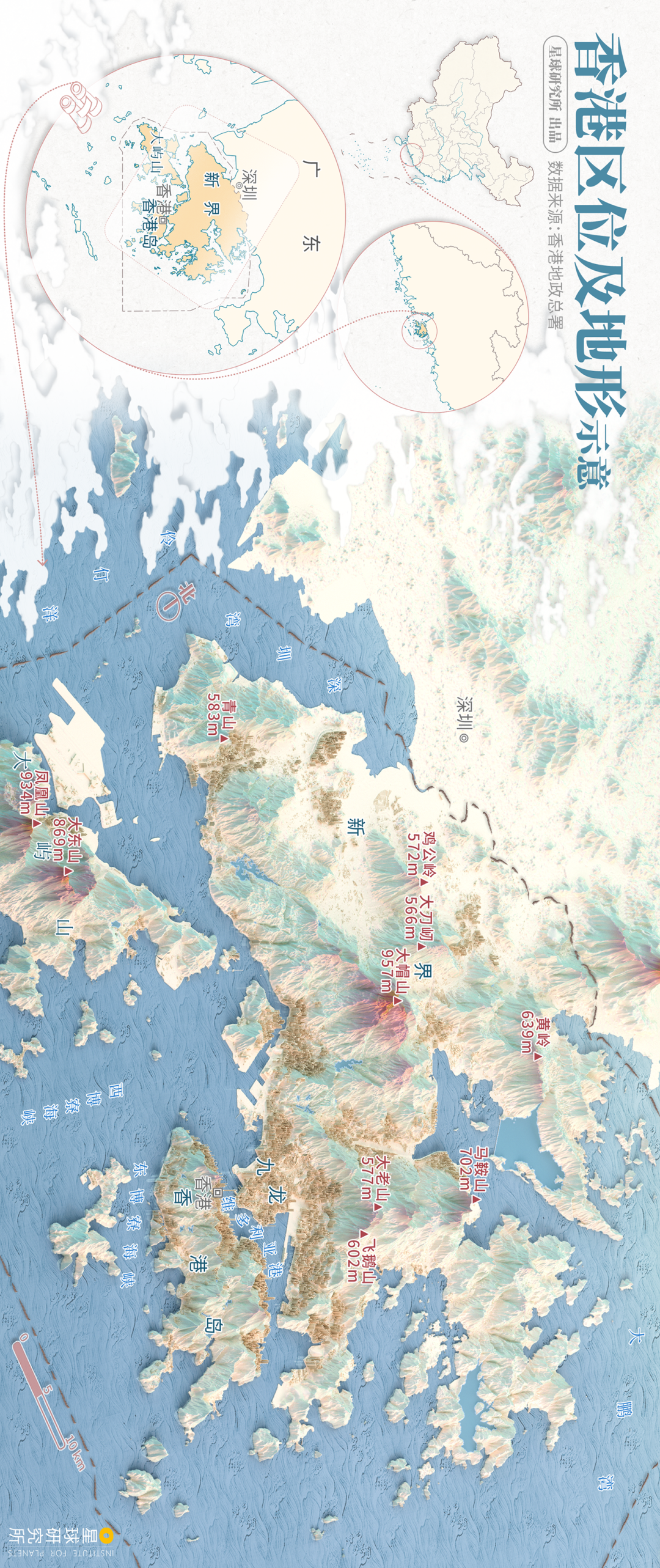 (请横屏观看,香港区位及地形示意,制图@松楠)