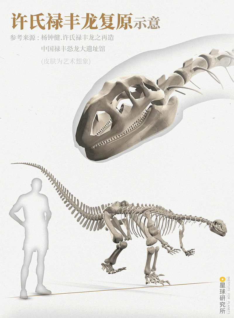 (许氏禄丰龙复原图,颜色和动态仅供参考,制图@郑伯容/星球研究所)