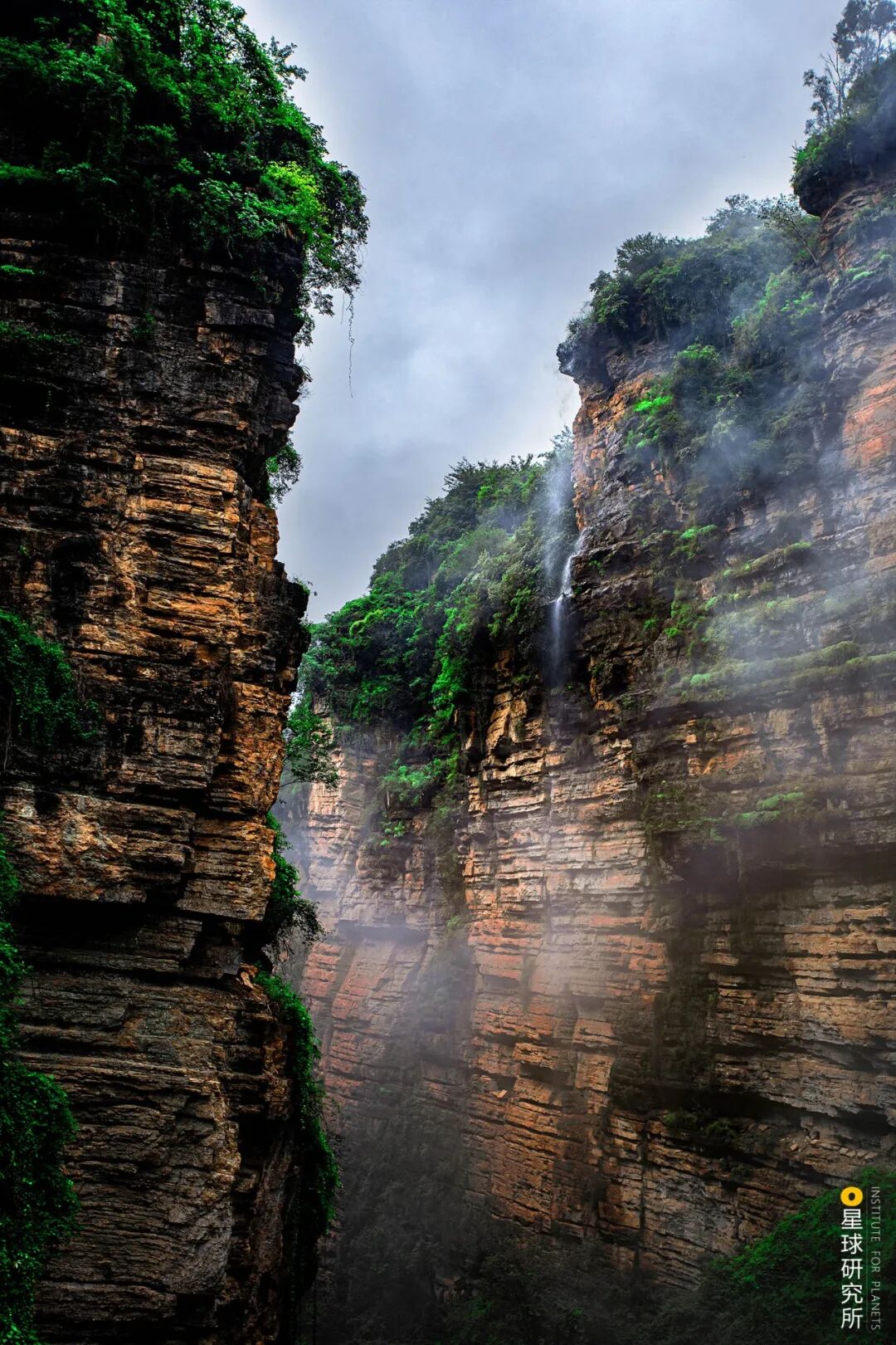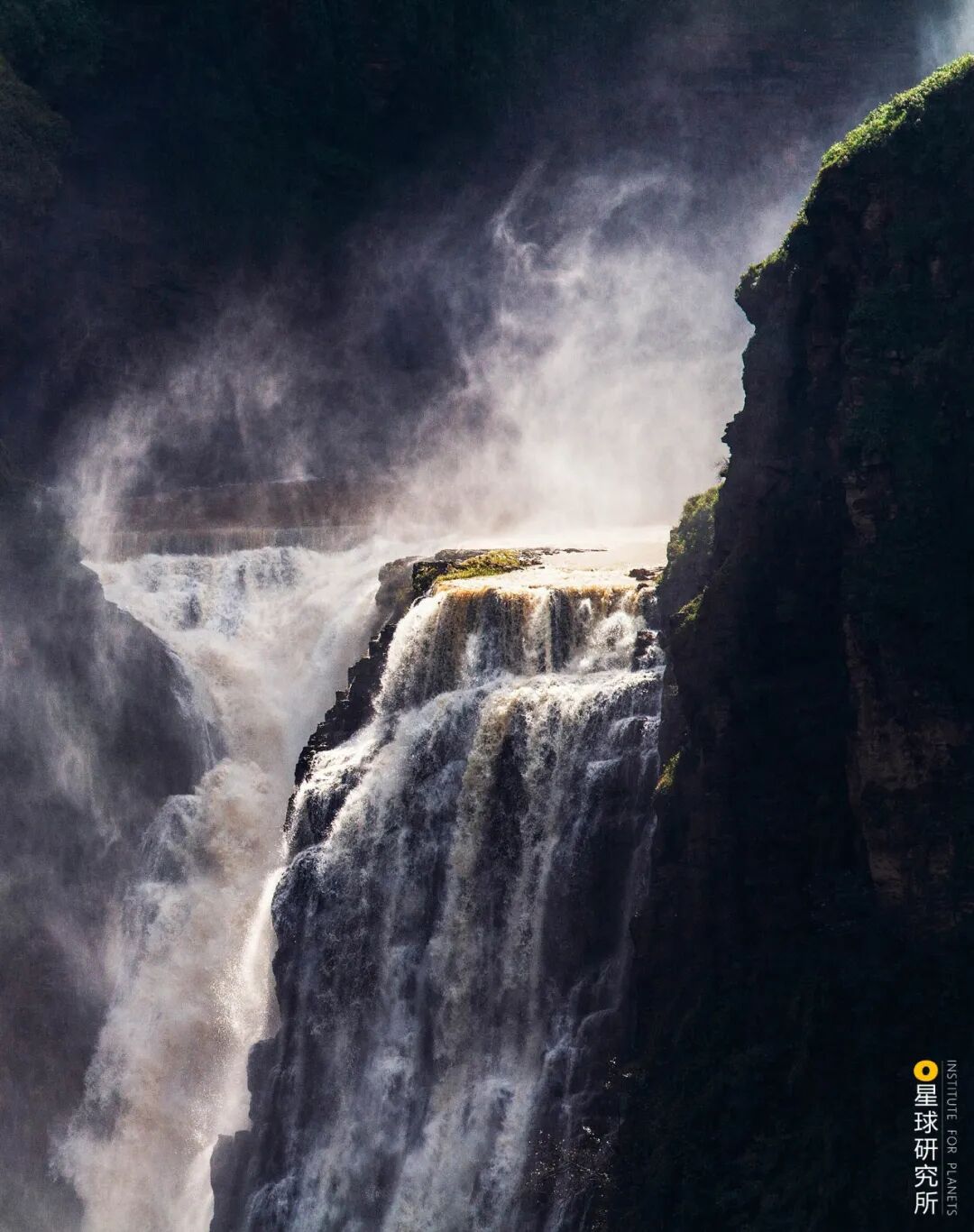 (大姚三潭瀑布所在的山崖由紫红色的岩石构成,摄影师@王静)