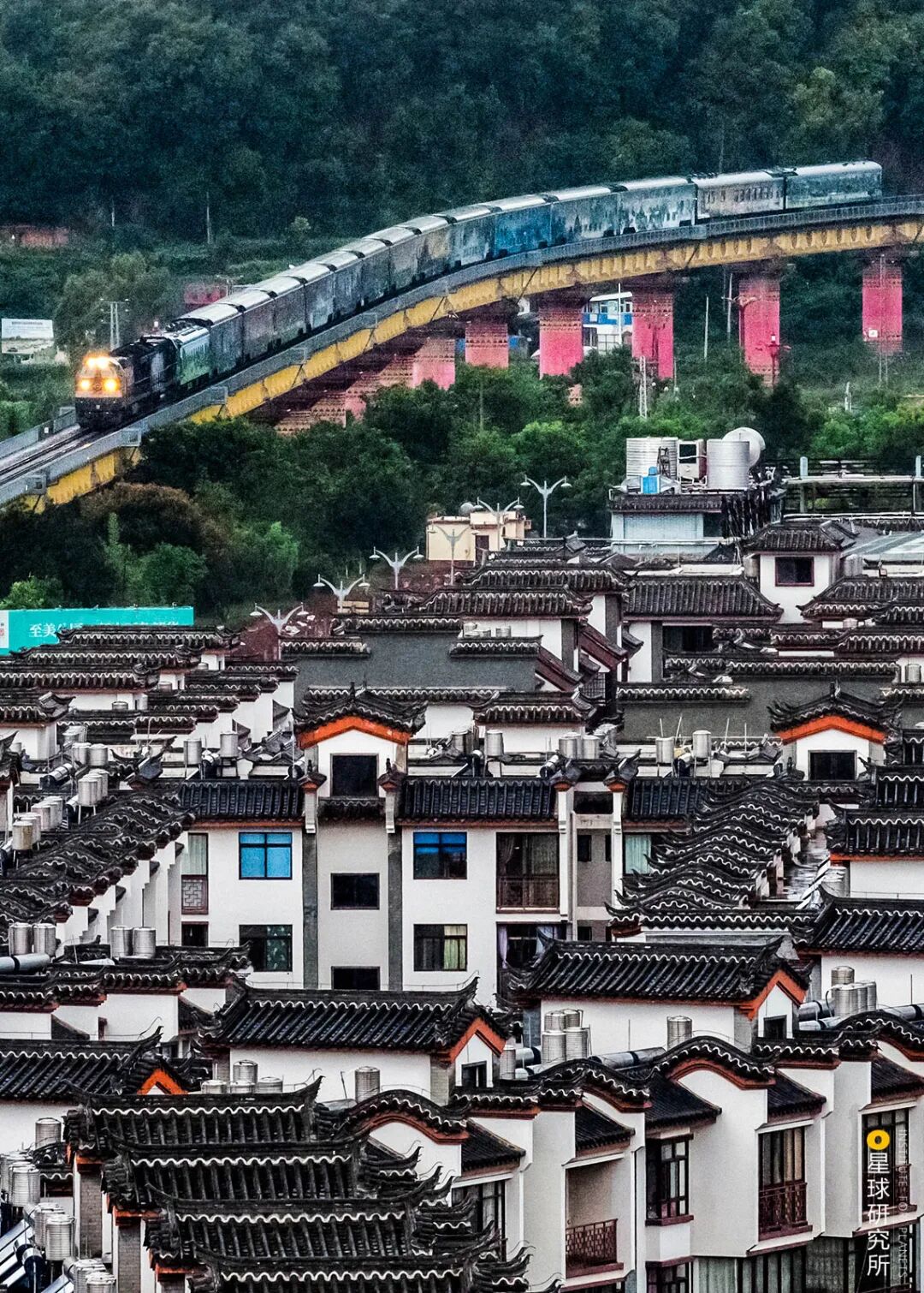 (广大线楚雄特大桥经过彝人古镇,摄影师@饶颖)