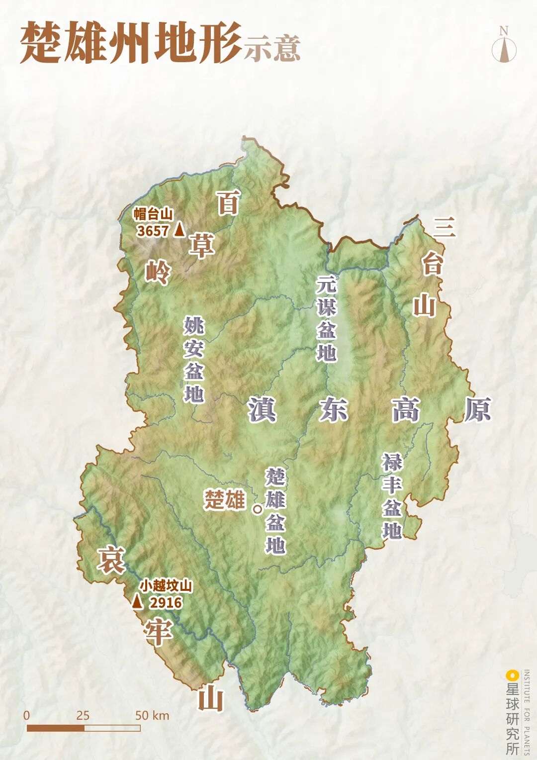 (楚雄州地形示意,制图@陈志浩/星球研究所)