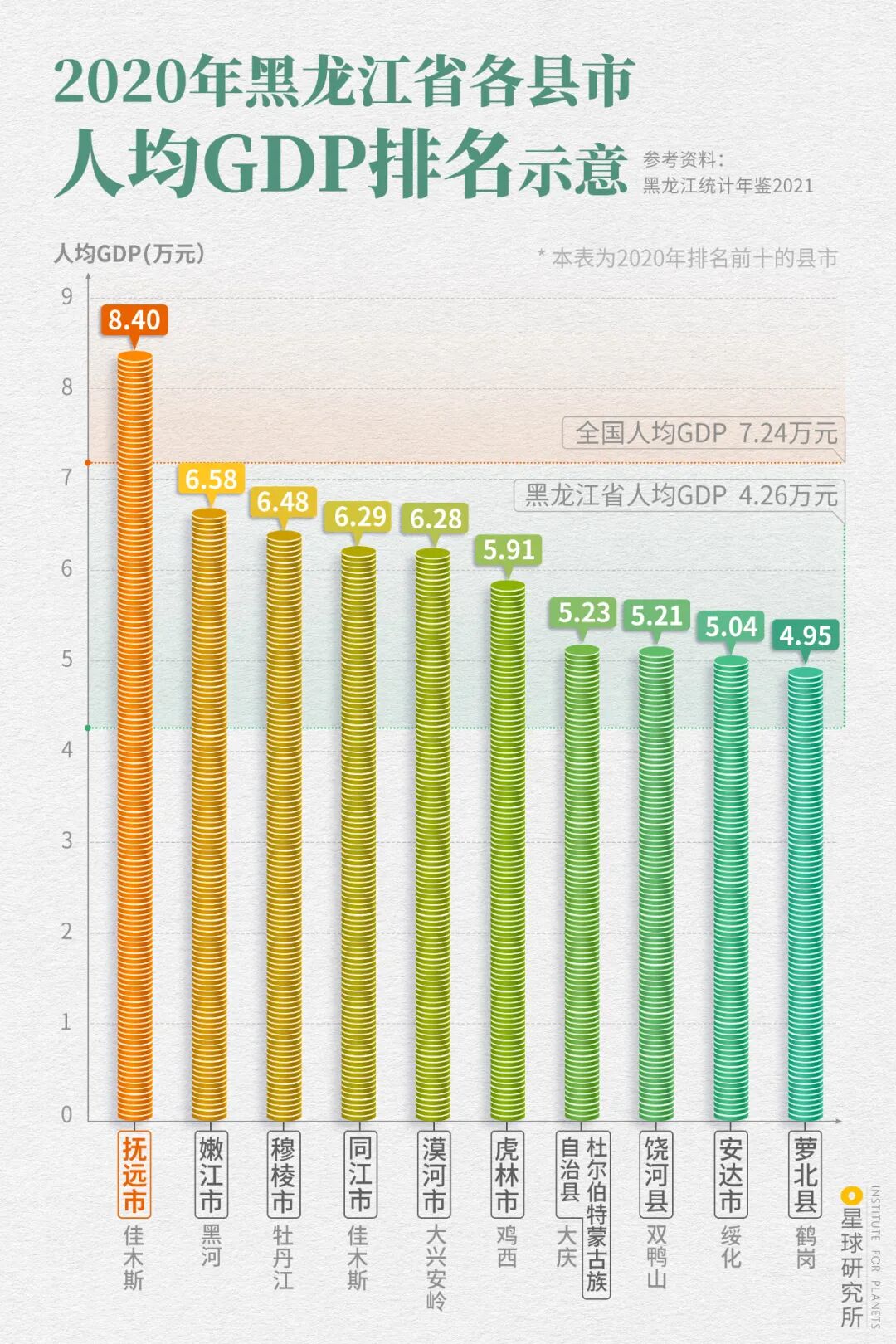 (2020年黑龙江省各县市人均GDP排名示意,“市”指县级市,制图@龙雁翎/星球研究所)