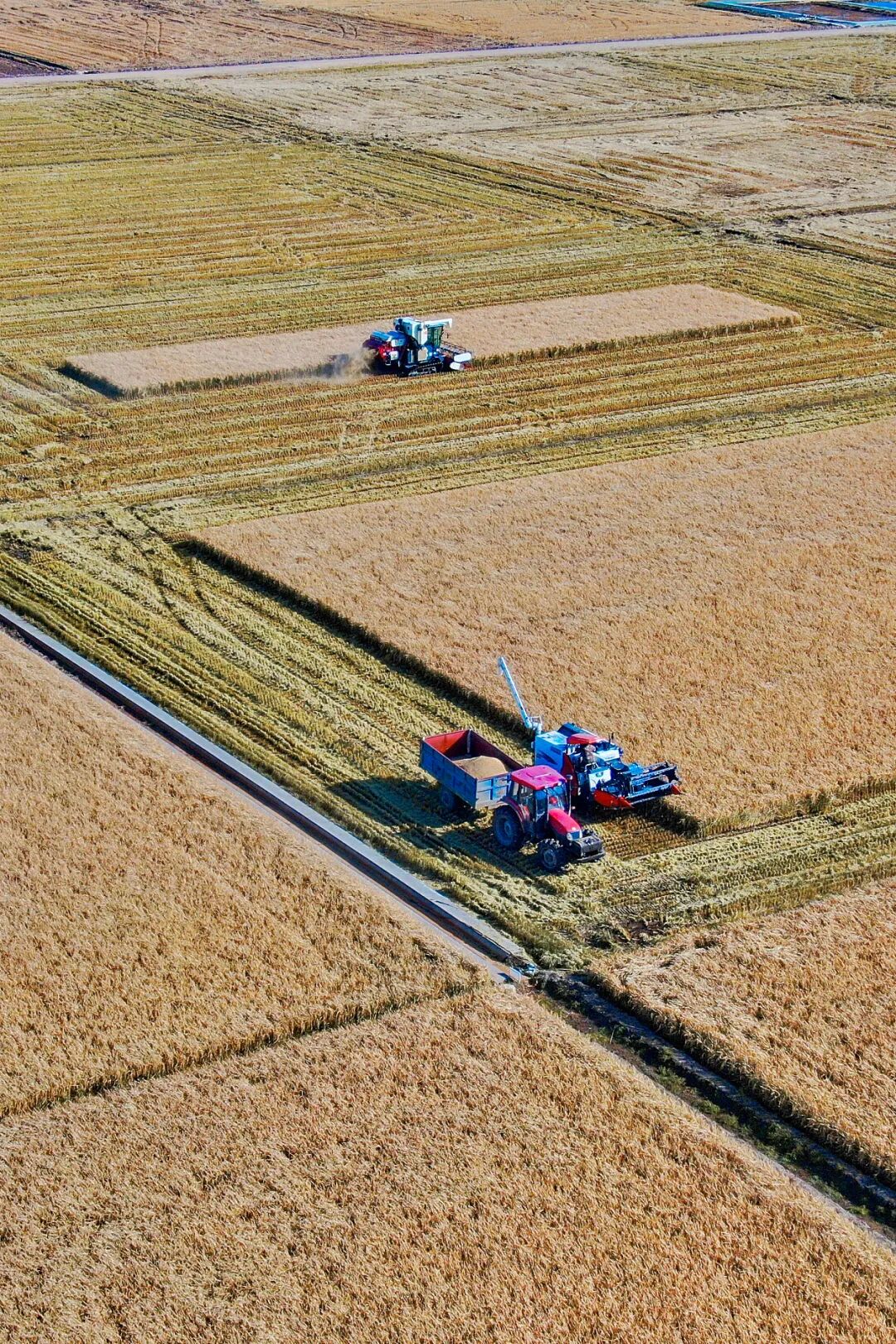 (连片种植的一大优势是便于人们采用机械化收割,图片来源@视觉中国)