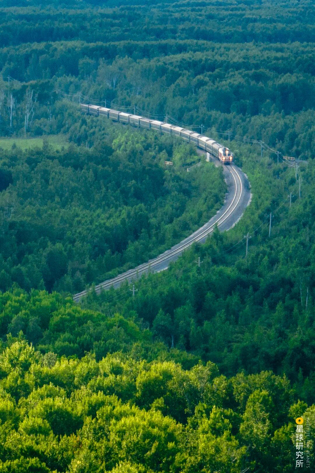 (客货共线的前抚铁路是中国最东端的铁路,图为火车穿行于抚远的森林中,摄影师@堂少)