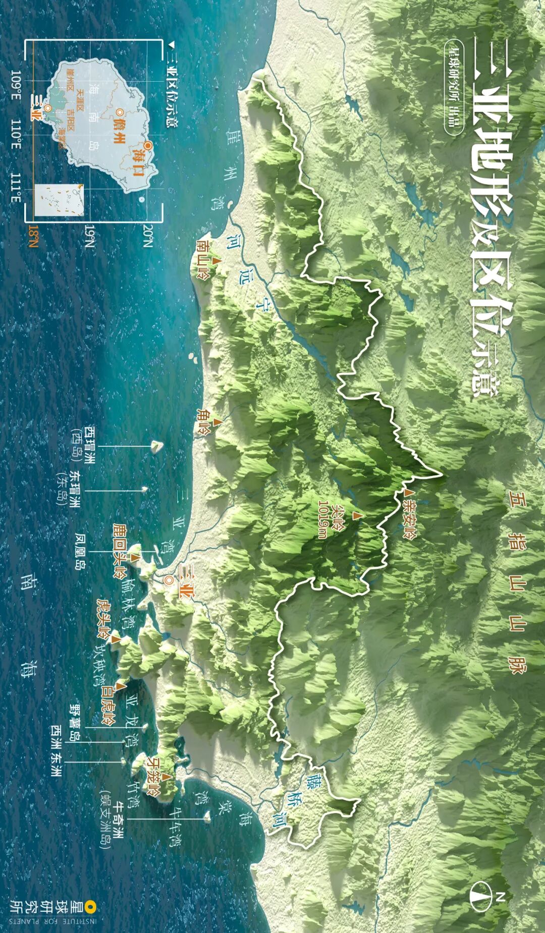 (请横屏观看,三亚市地形及区位示意,制图@高俪倩/星球研究所)