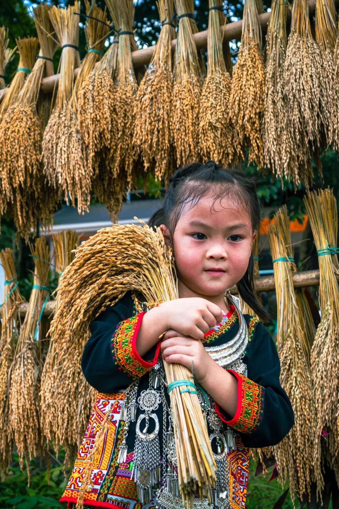 (海南黎族小女孩正在收稻,摄影师@蒋丰)