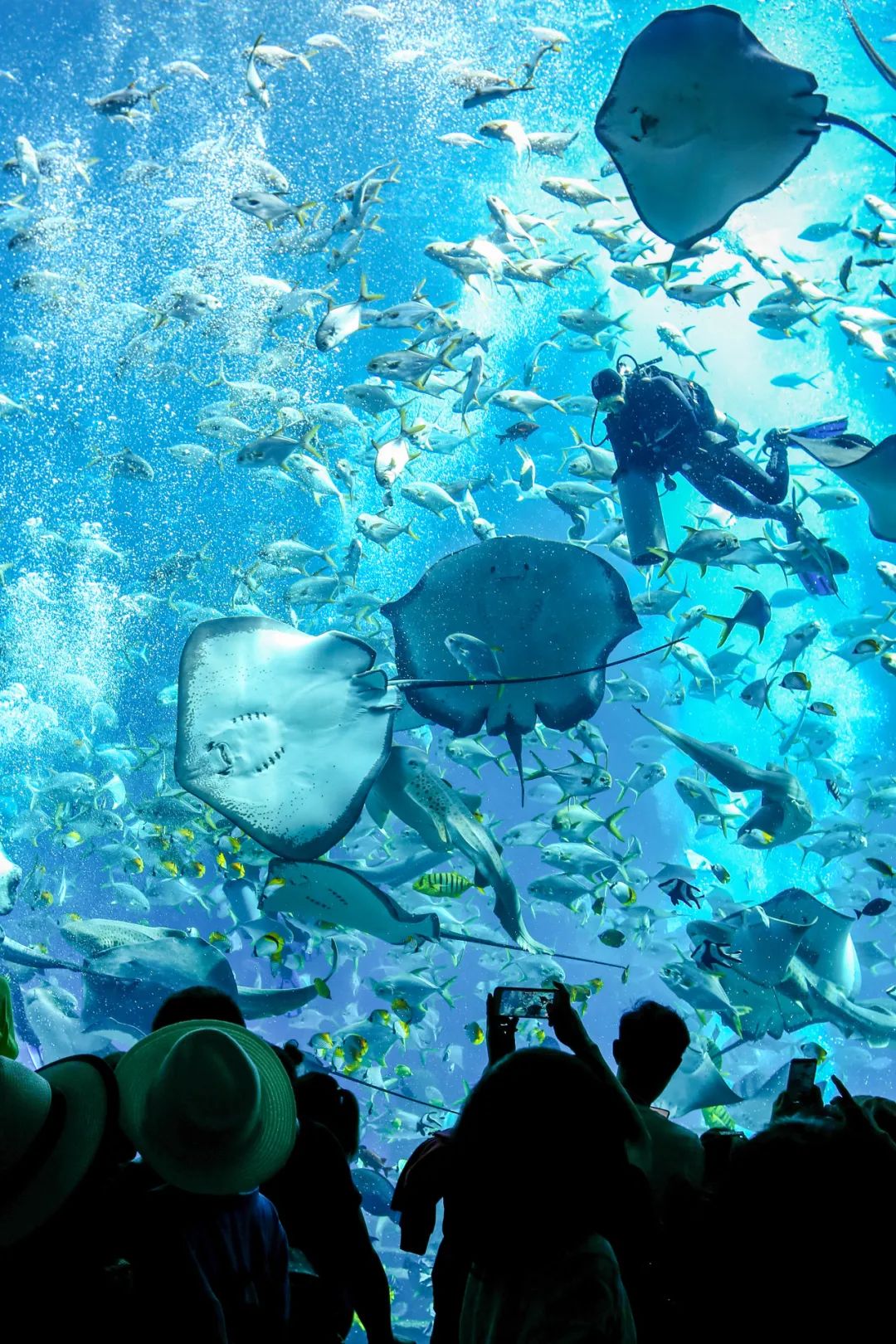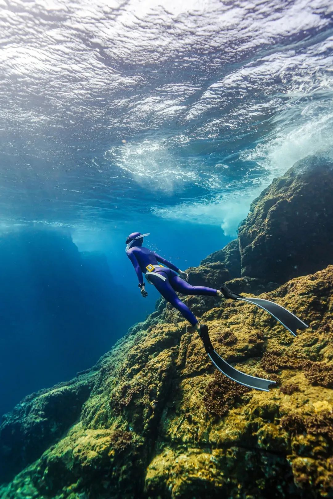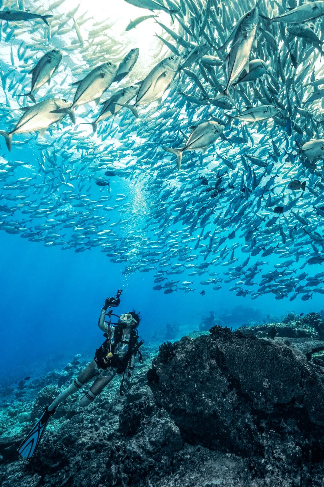 (三亚潜水者追逐鱼群,图片来源@视觉中国)