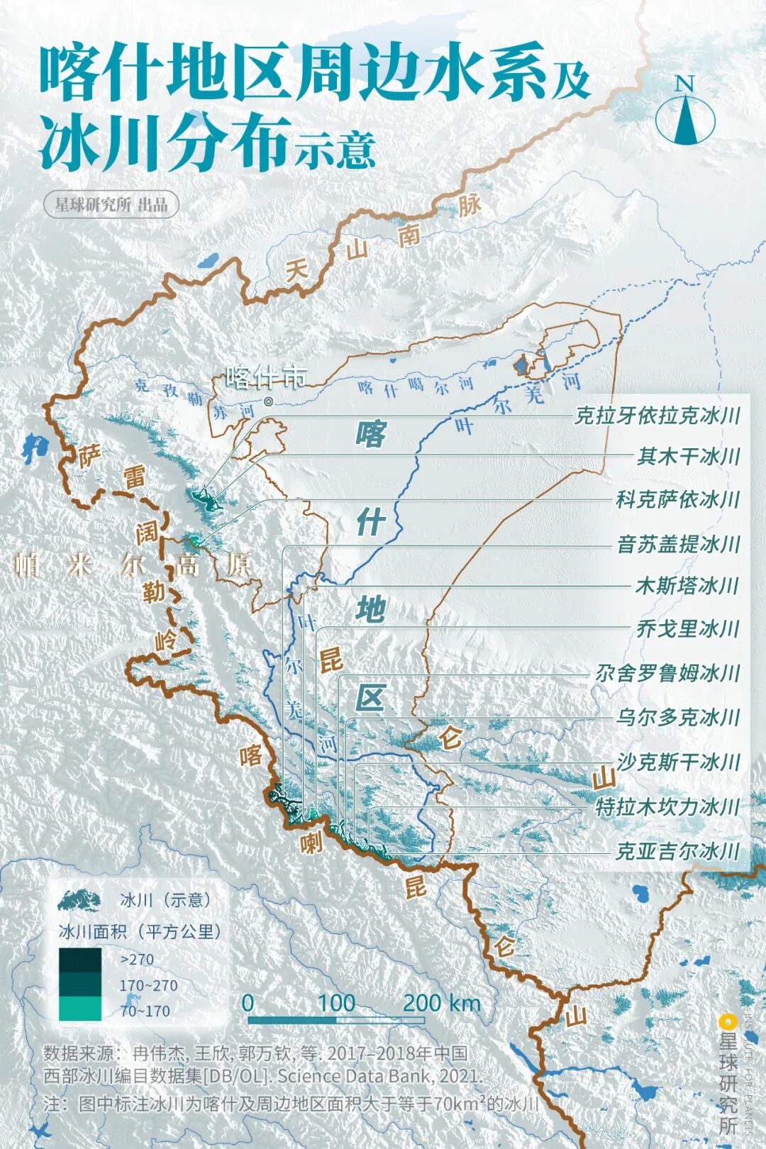 (喀什地区周边水系及冰川分布示意,制图@高俪倩/星球研究所)