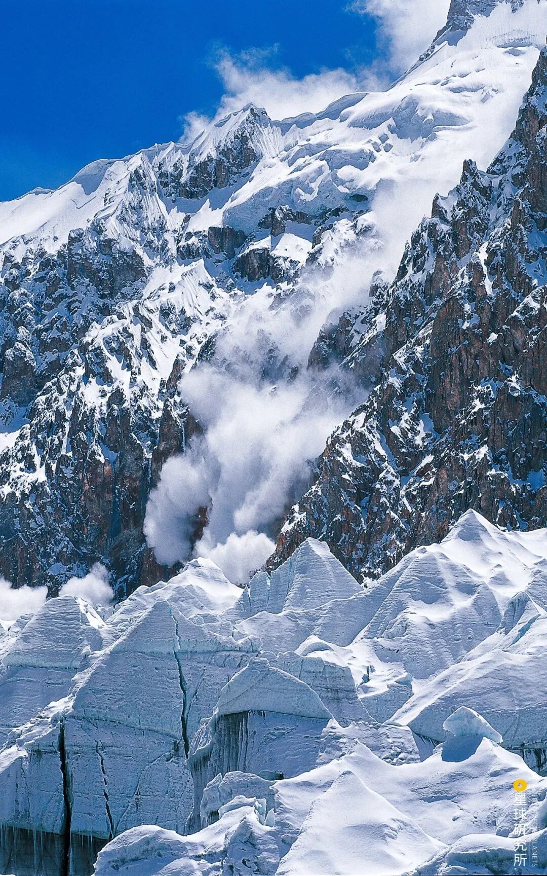 (喀喇昆仑山中冰川的雪崩,摄影师@郝沛)