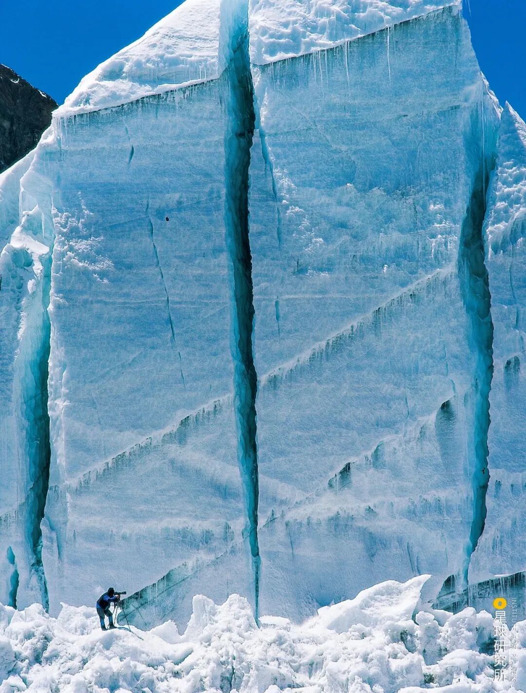 (喀喇昆仑山中冰川的冰墙,摄影师@郝沛)