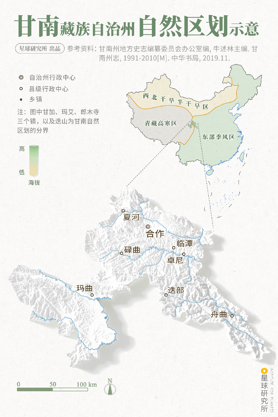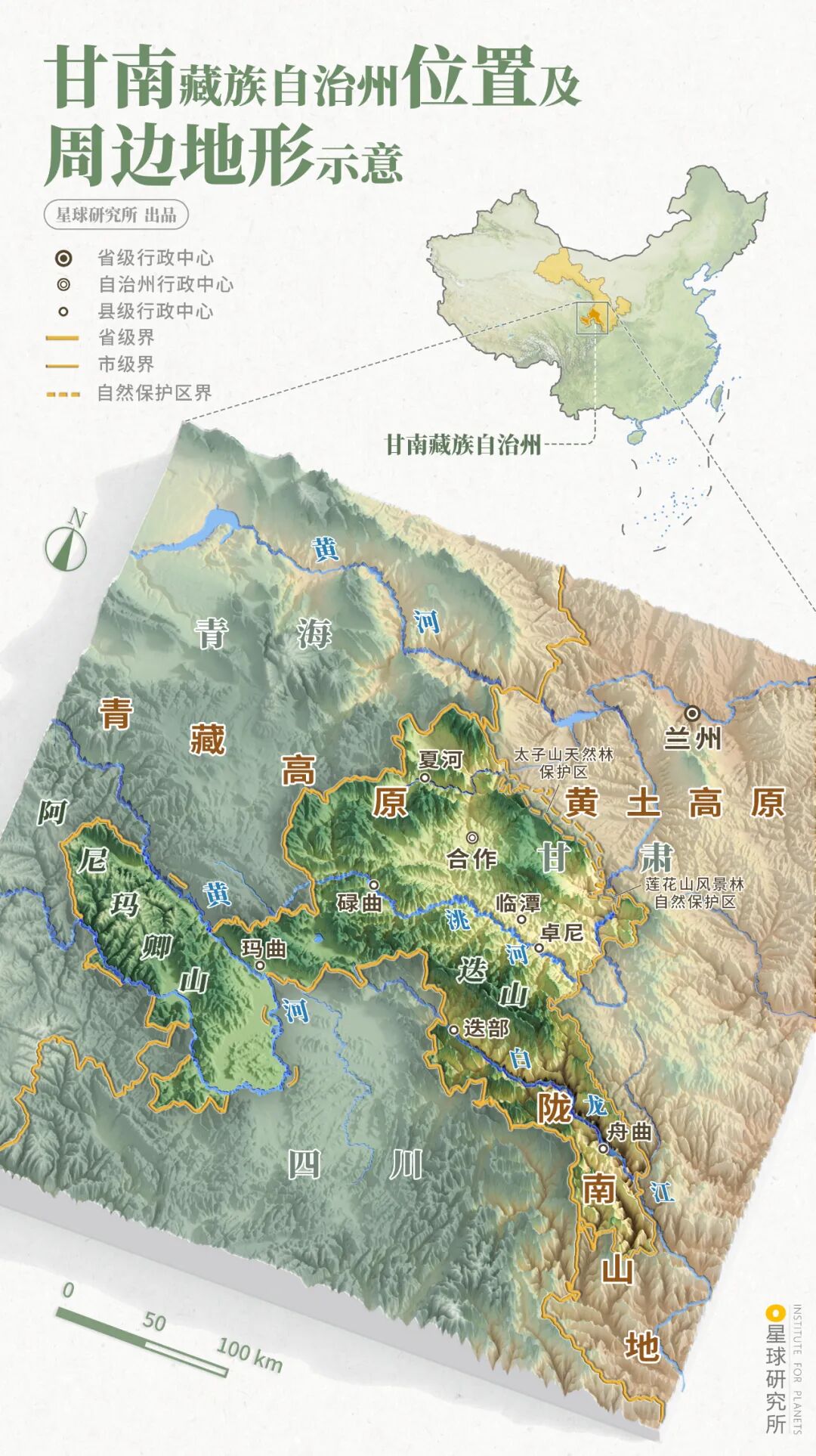 (甘南藏族自治州地理区位示意,制图@周晋宇/星球研究所)