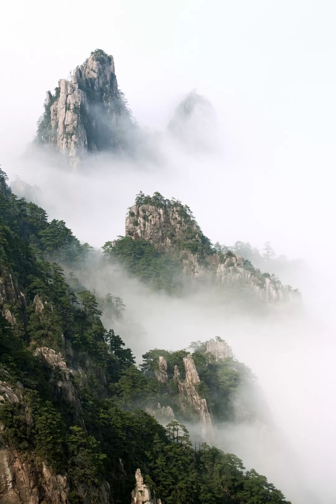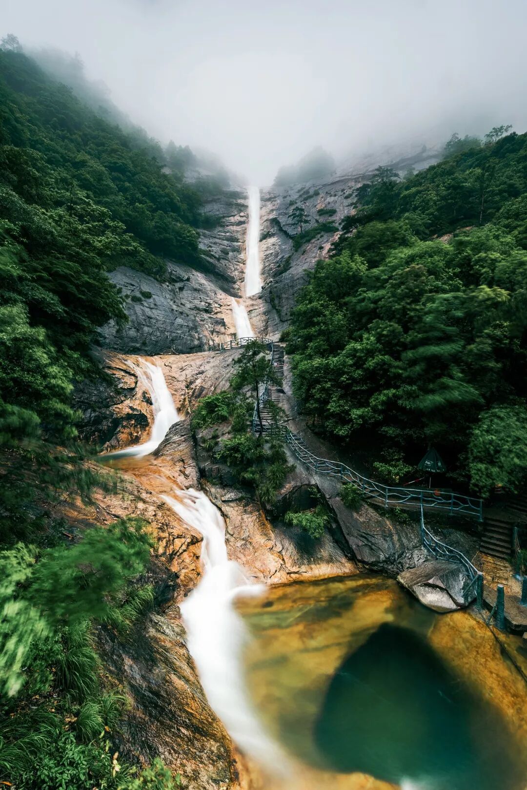 ▼徽州地区的山峰和岩石形态是地壳抬升和流水侵蚀共同作用的结果,下图是黄山九龙瀑,摄影师@方君尧