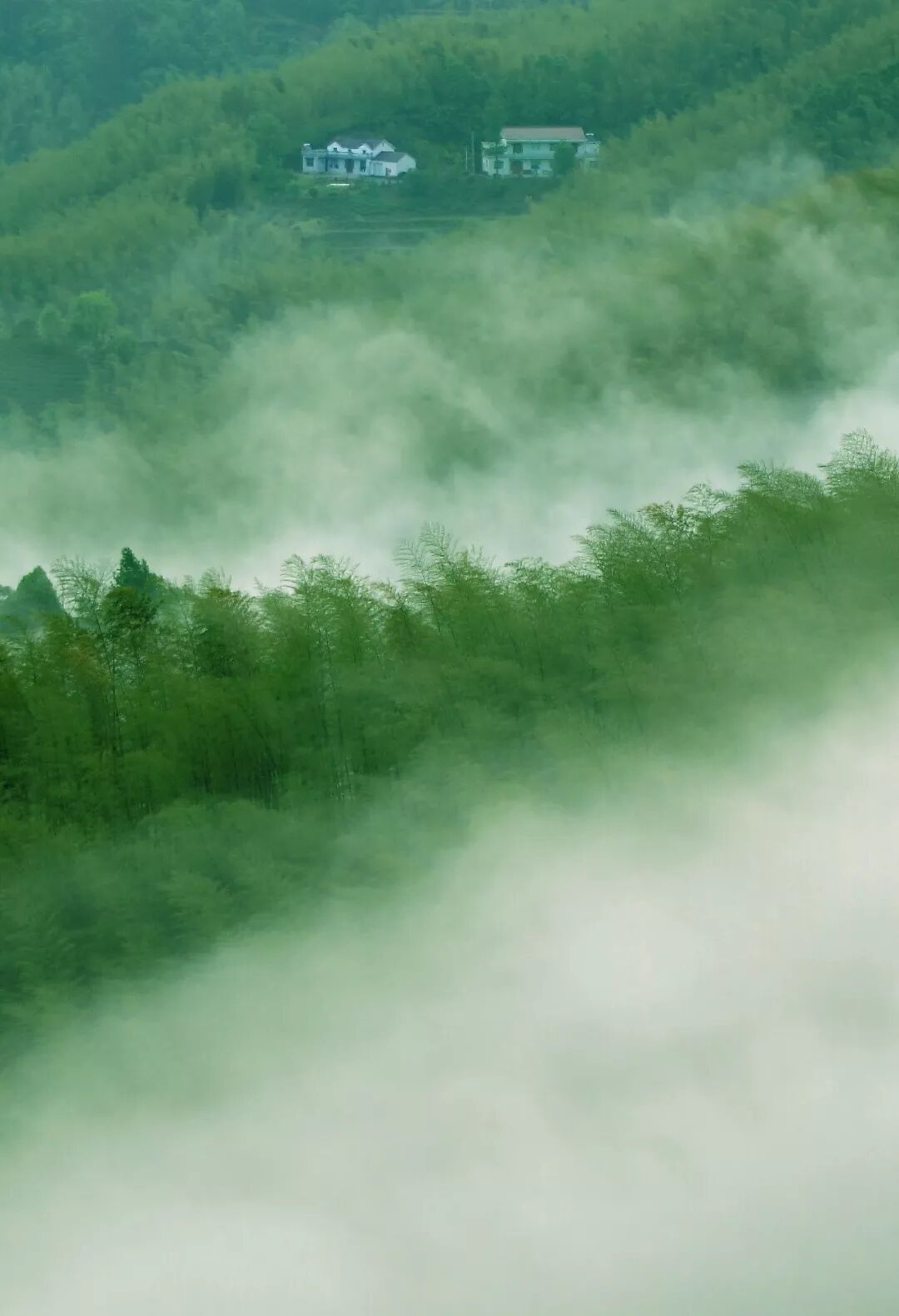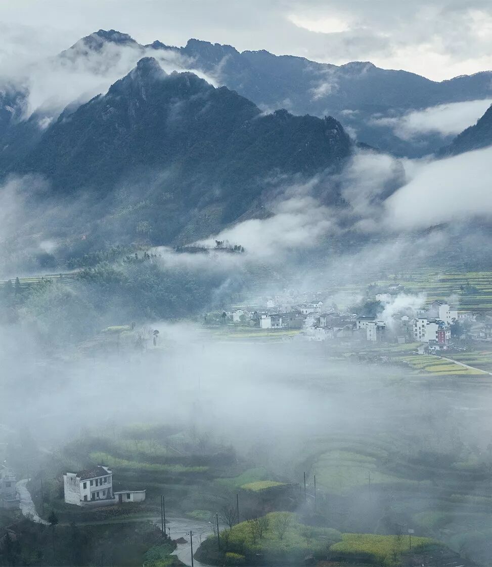 ▼绩溪县云雾蒸腾的山间村落 ,摄影师@清溪