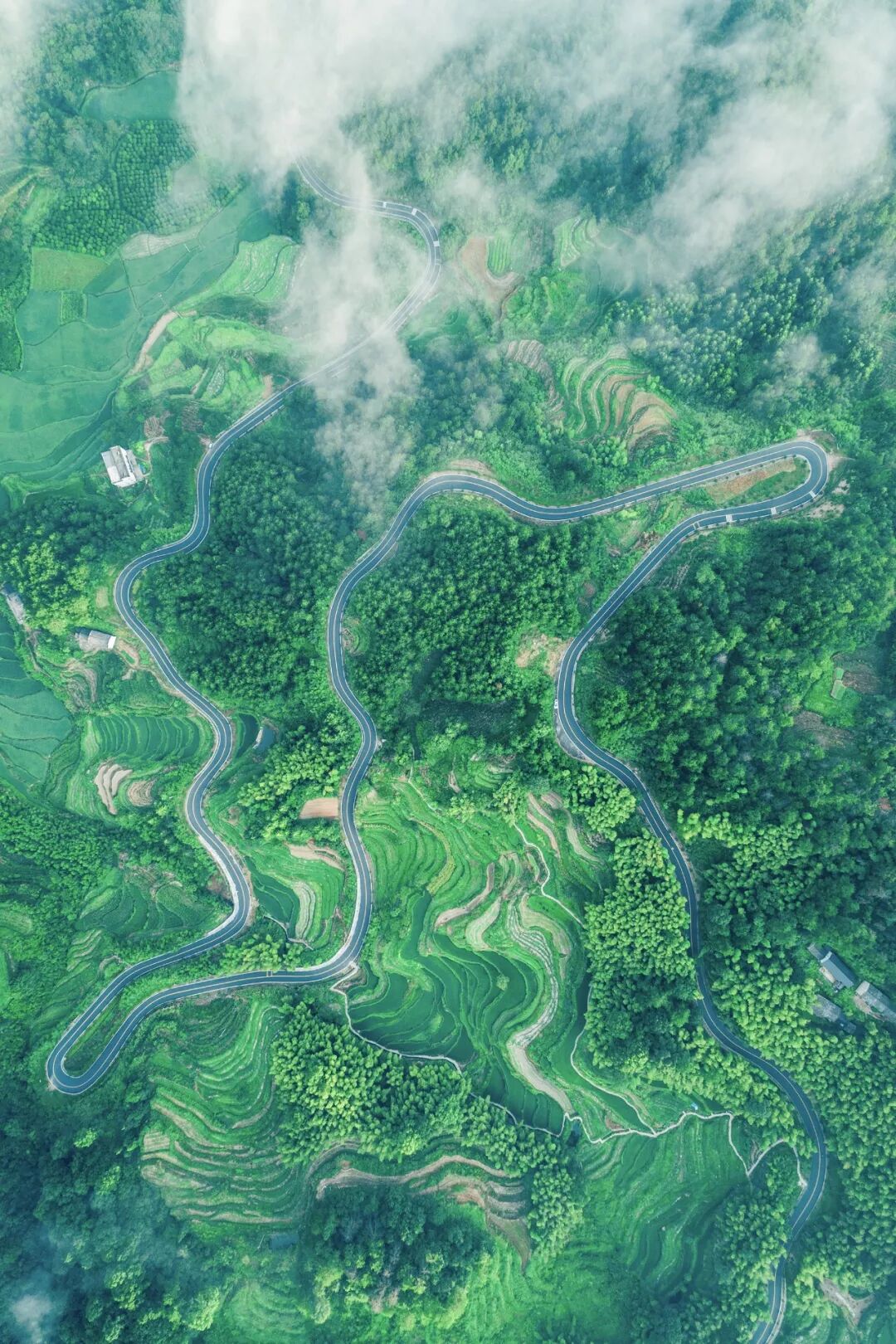 ▼位于山间盆地的婺源江岭村,摄影师@沉默的剑心