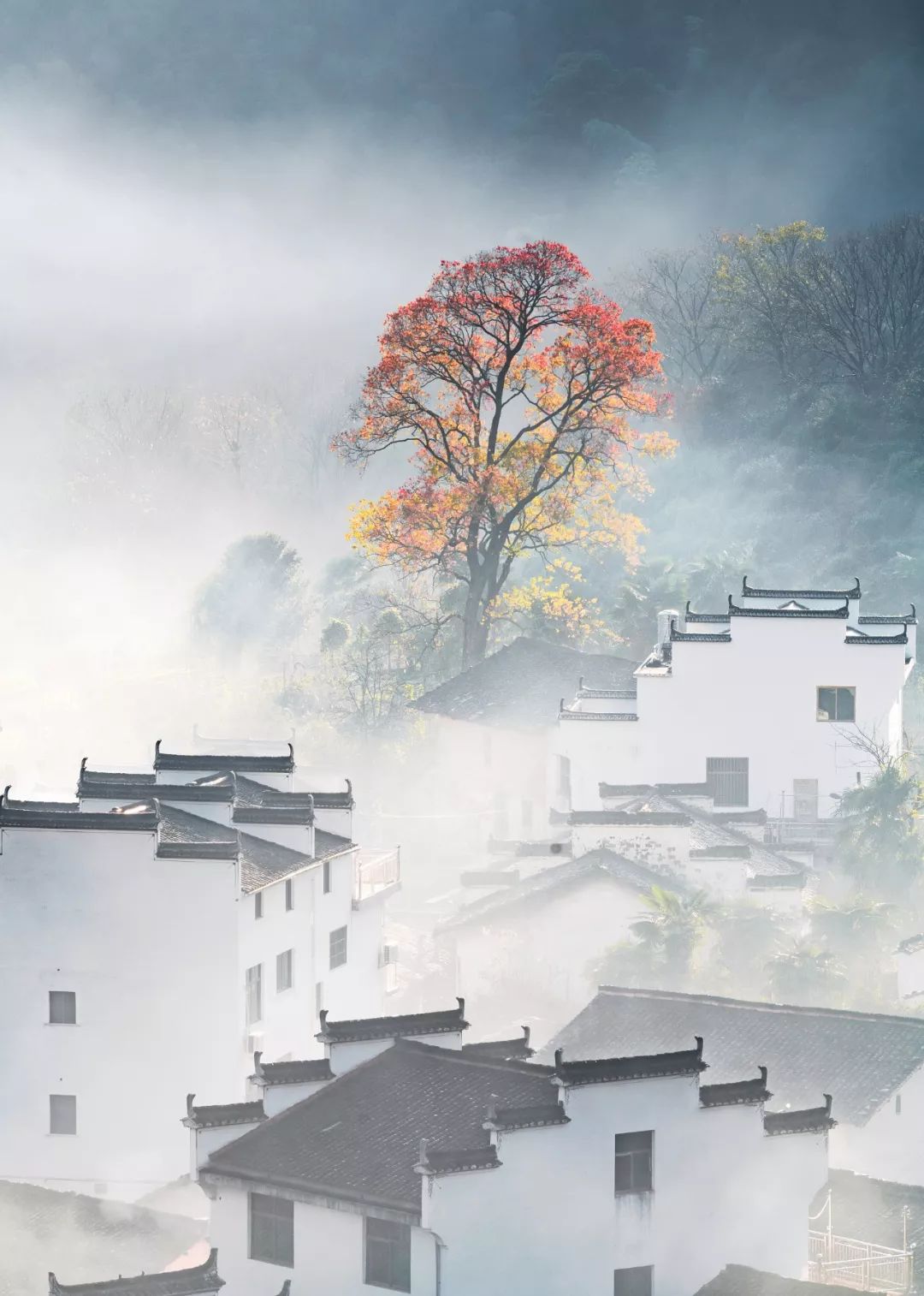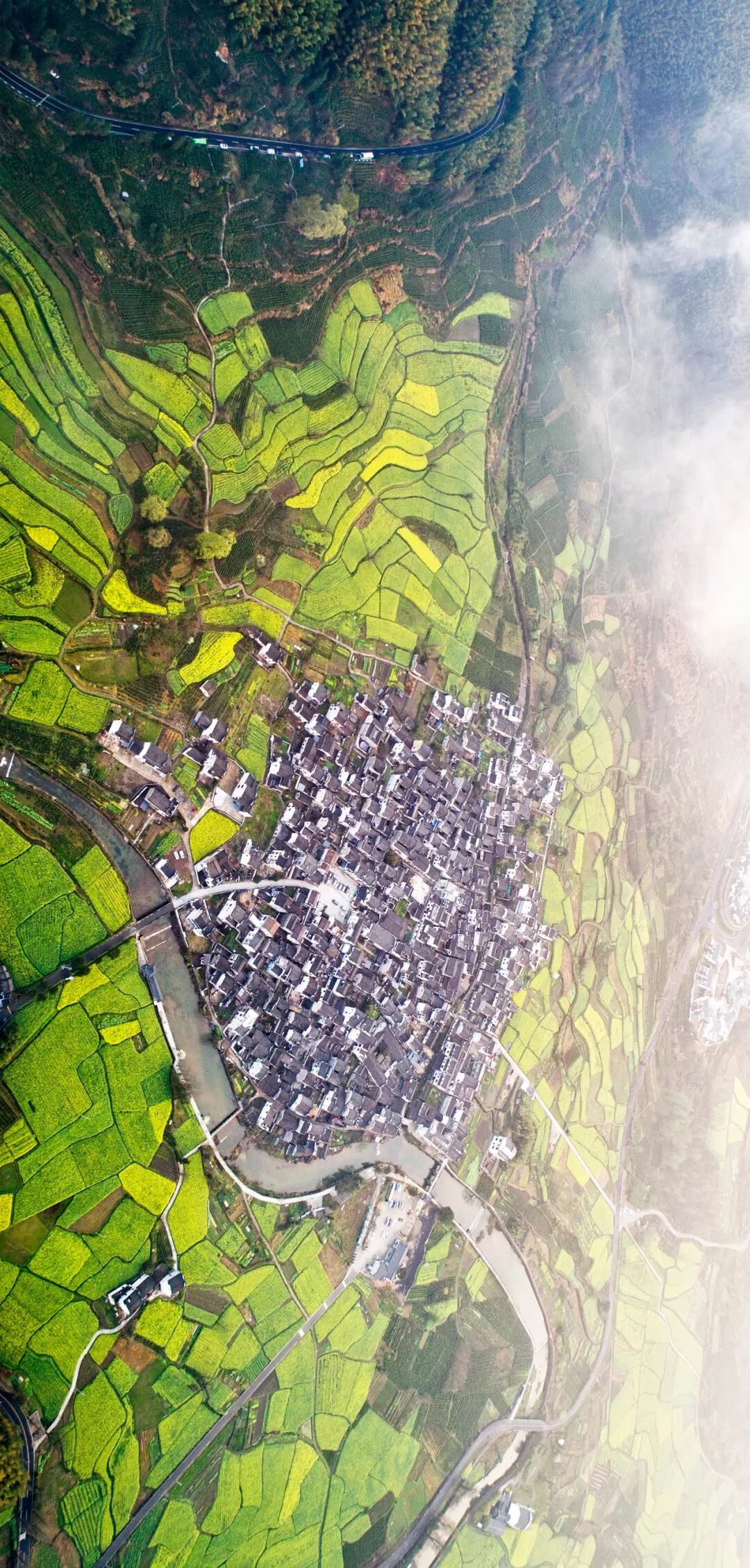▼黄山市徽州区灵山村,地处休屯盆地边缘,摄影师@方君尧