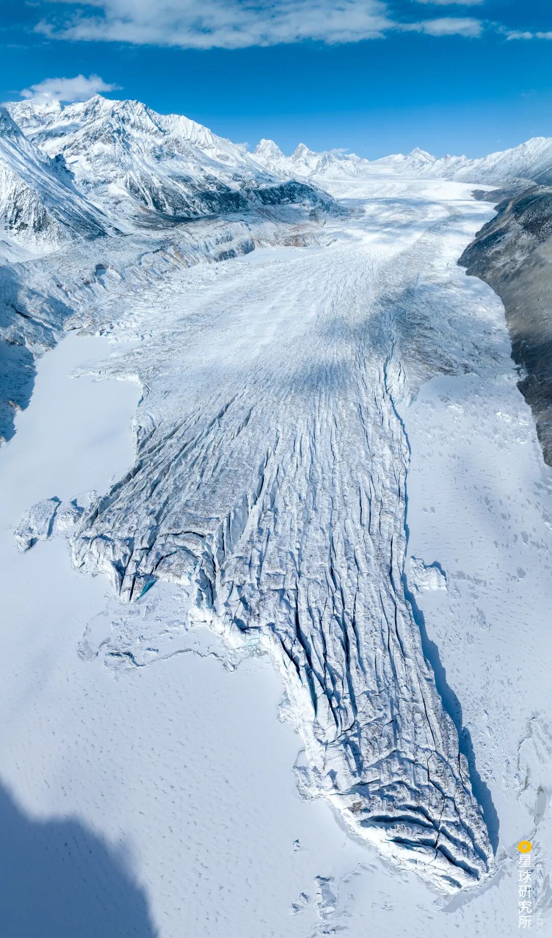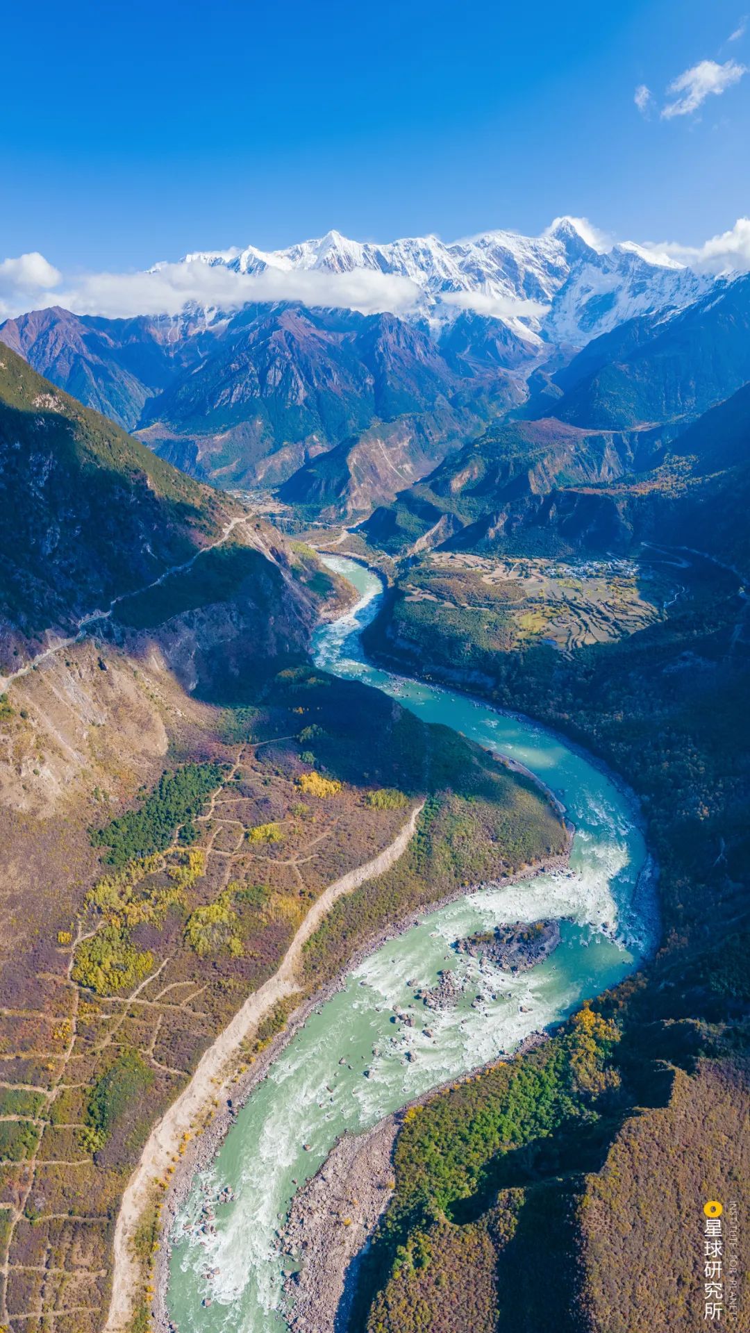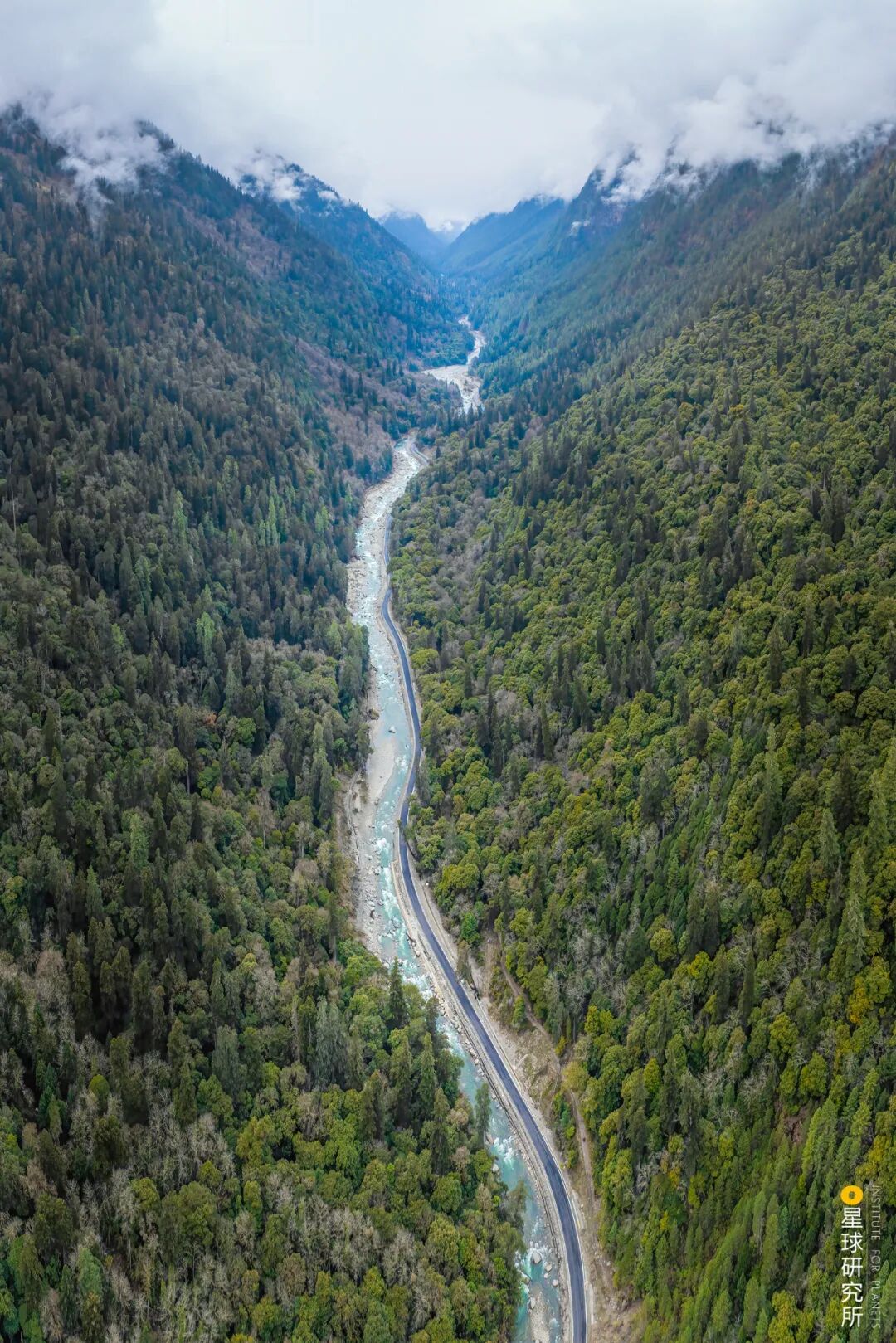 (请横屏观看,图片最下方被两条冰川包围的嘎隆拉隧道,而隧道上方则是墨脱公路的老路,摄影师@邹滔)