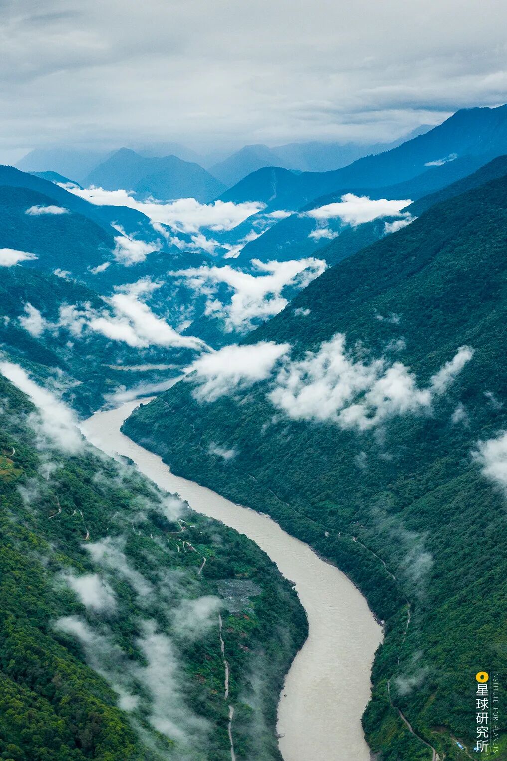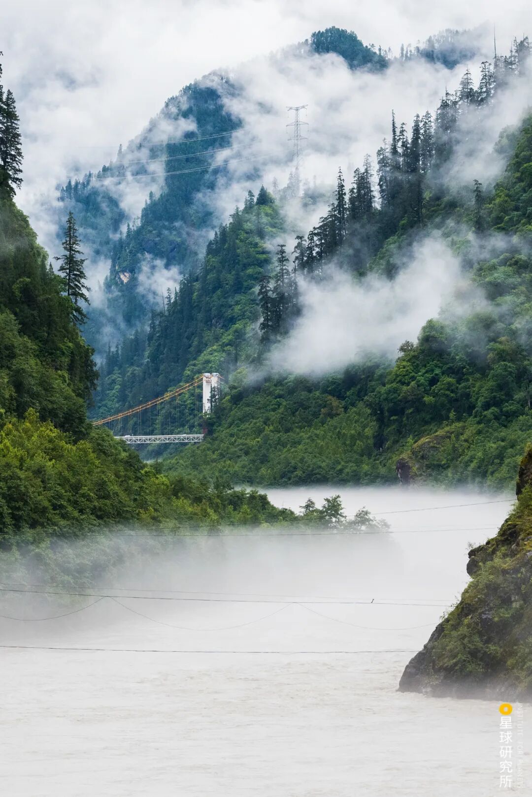 (请横屏观看,云雾笼罩下,雅鲁藏布江畔的墨脱县城,摄影师@刘璐)