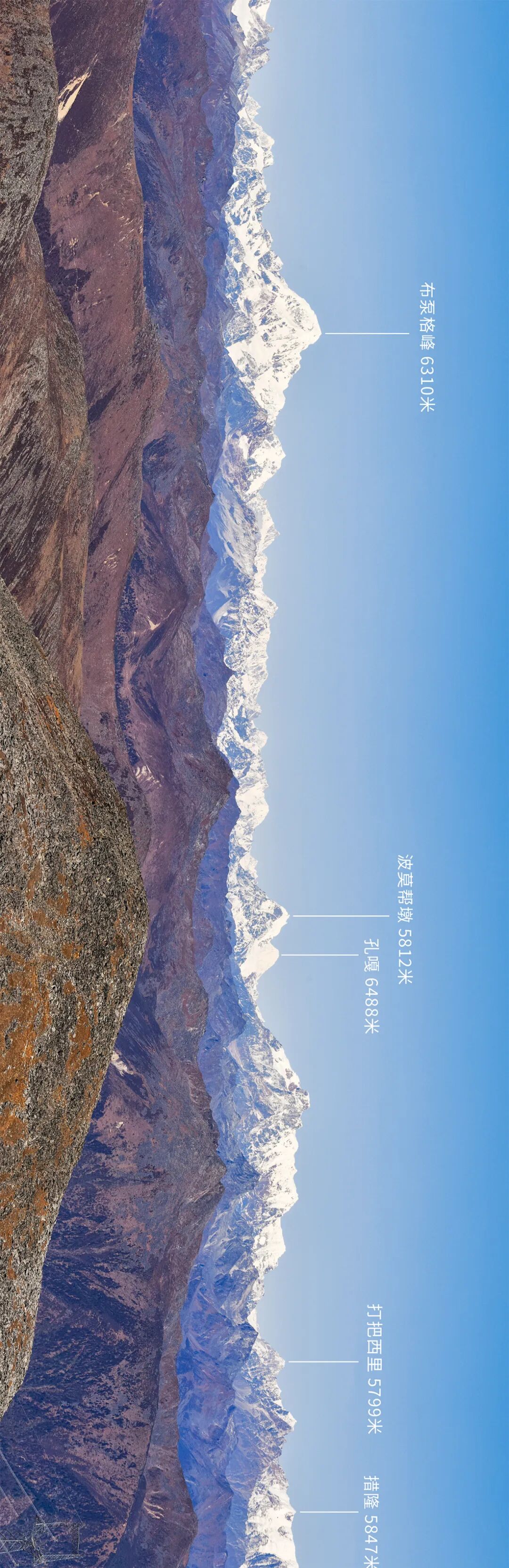 (请横屏观看,念青唐古拉山脉东段,布贡格峰至泽普岗日,摄影师@三晋与嘉绒)