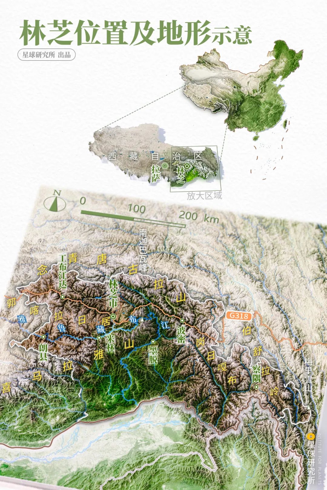 (林芝位置及地形示意,制图@陈志浩/星球研究所)