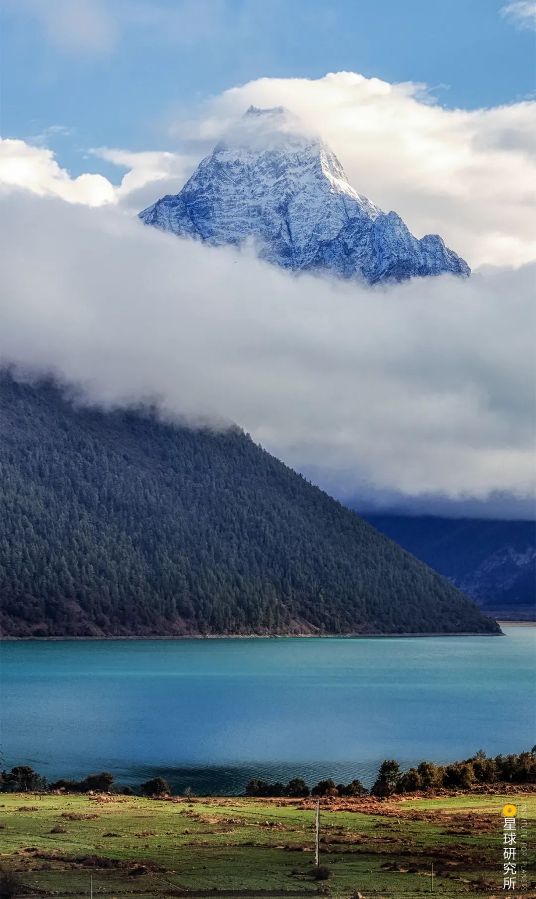 (巴松错与它背后的杰钦朗拉嘎布峰,摄影师@李珩)