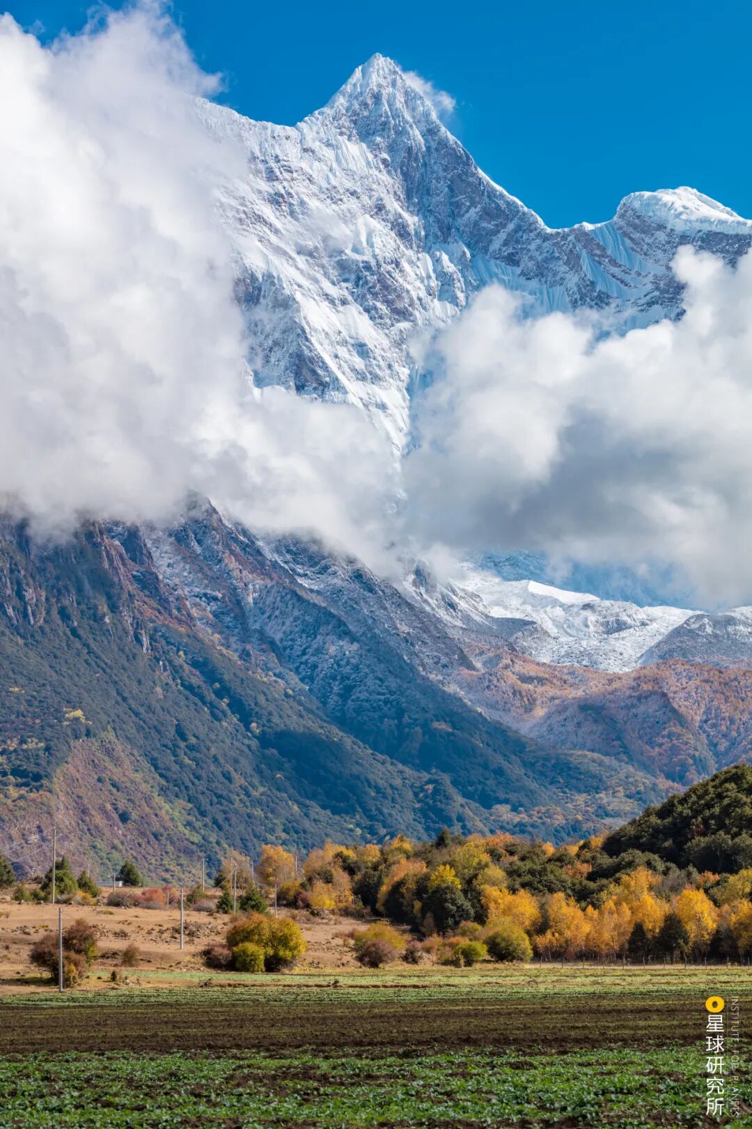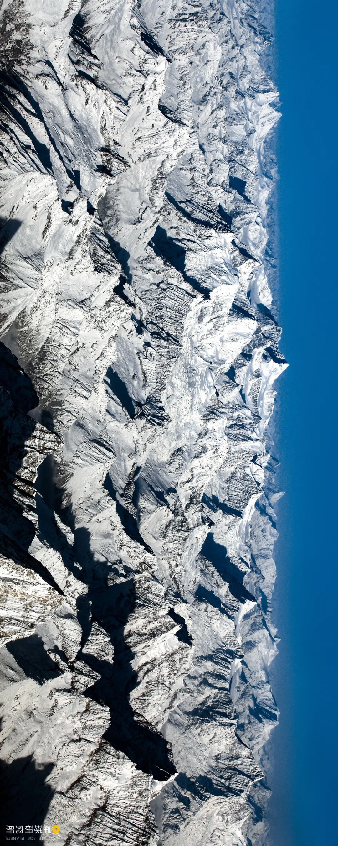 (请横屏观看,喜马拉雅山脉与念青唐古拉山脉交汇处的一系列山峰,远处为南迦巴瓦峰,摄影师@笨小航)