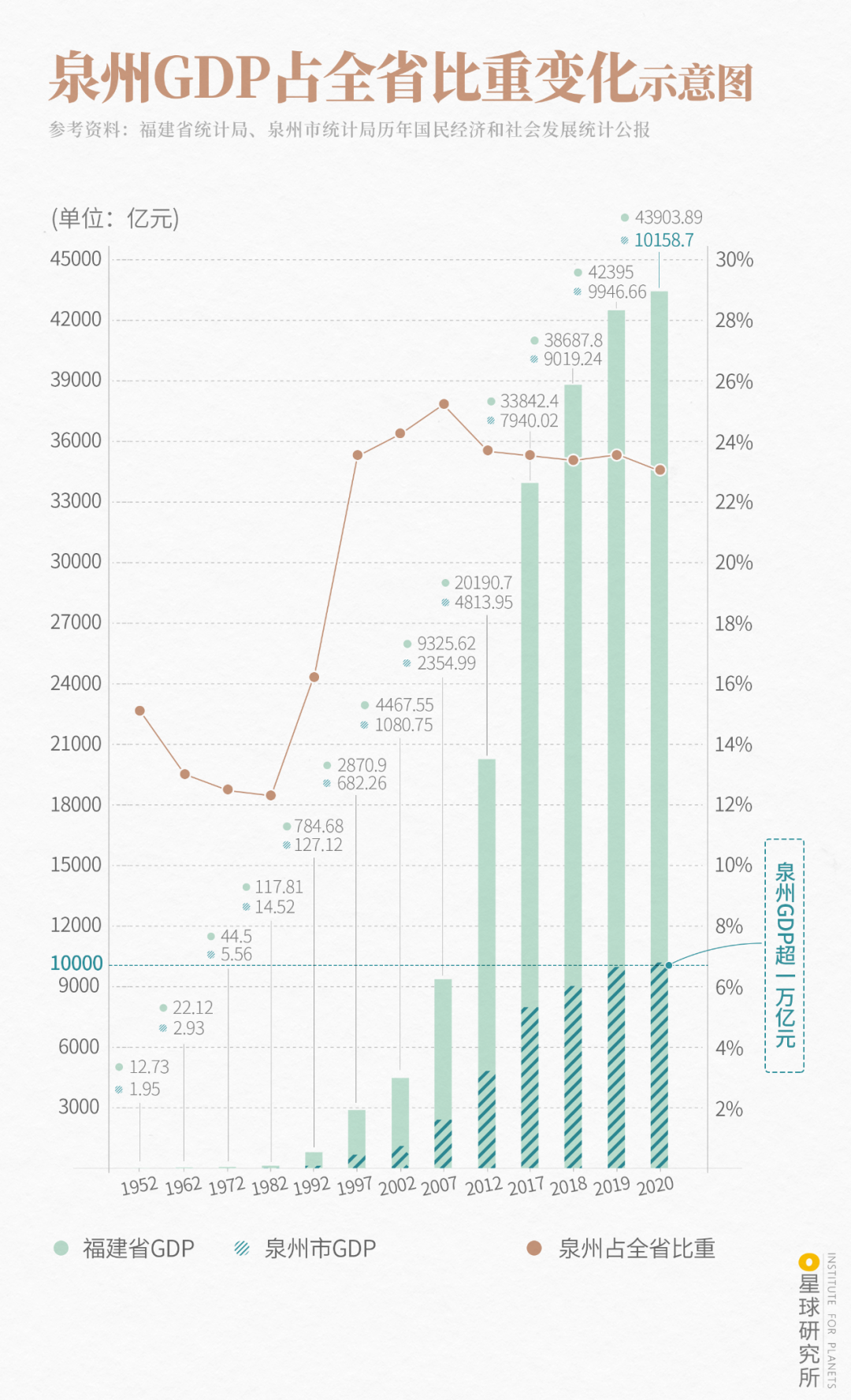 (泉州GDP占全省比重变化示意,仅显示部分年份,制图@汉青/星球研究所)