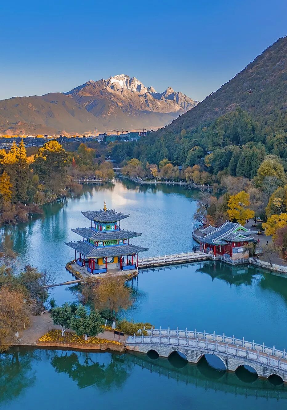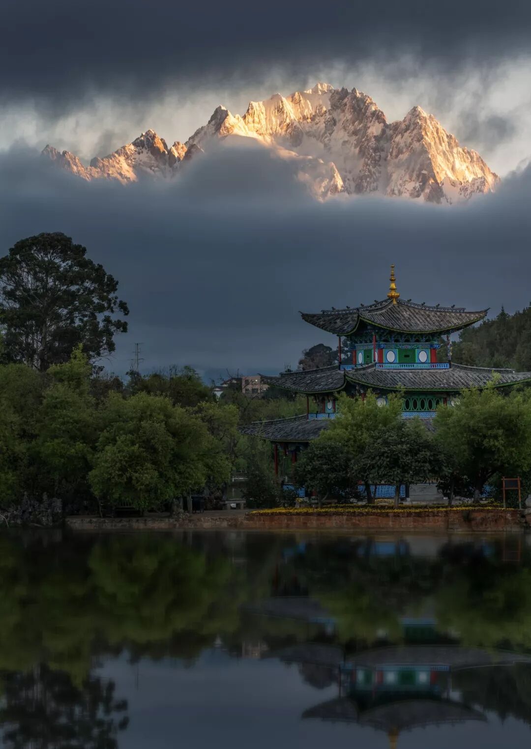 (黑龙潭得月楼与玉龙雪山,摄影师@宫小剑)