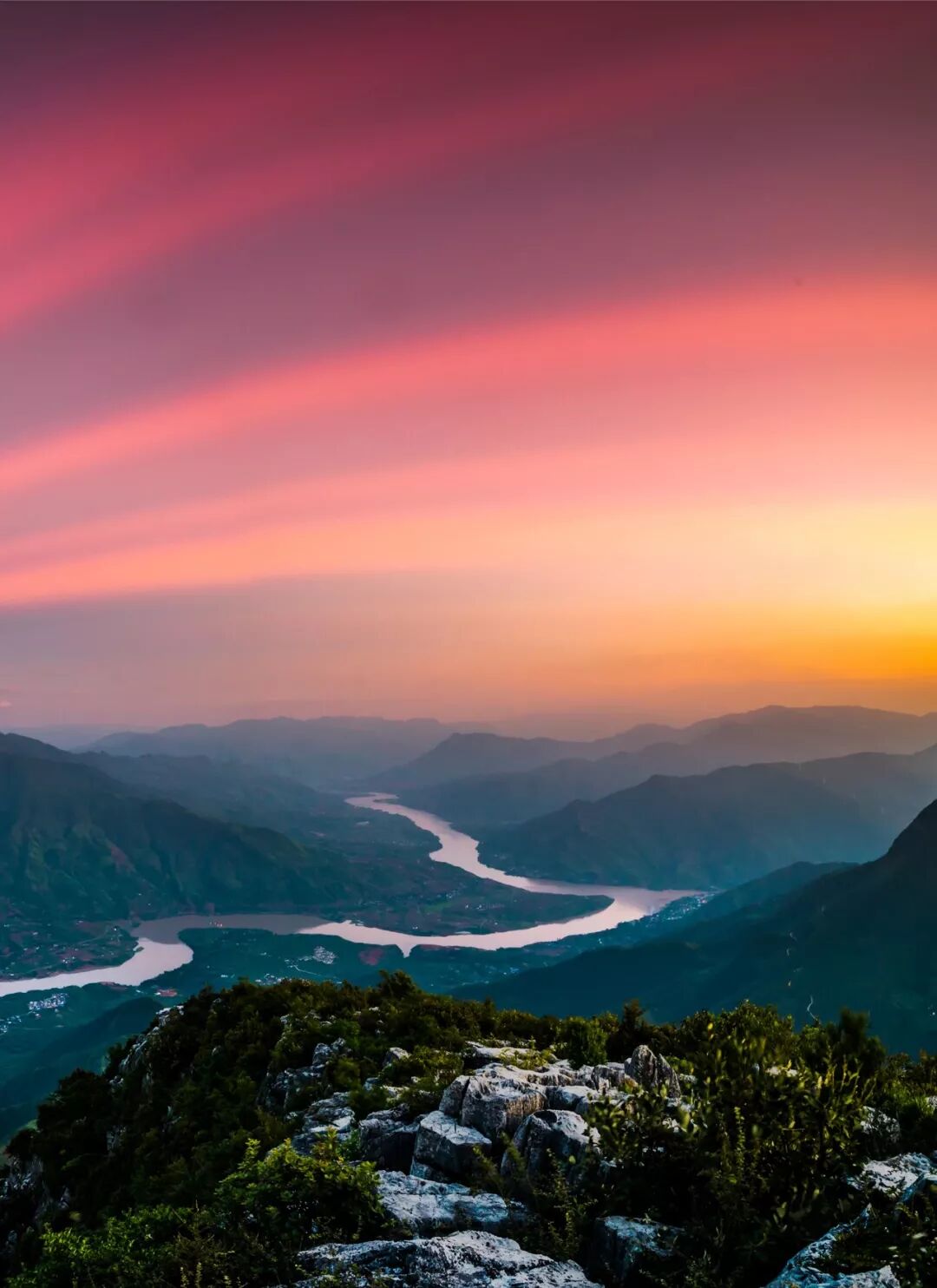 (请横屏观看,老君山黎明丹霞,摄影师@大闯karma)