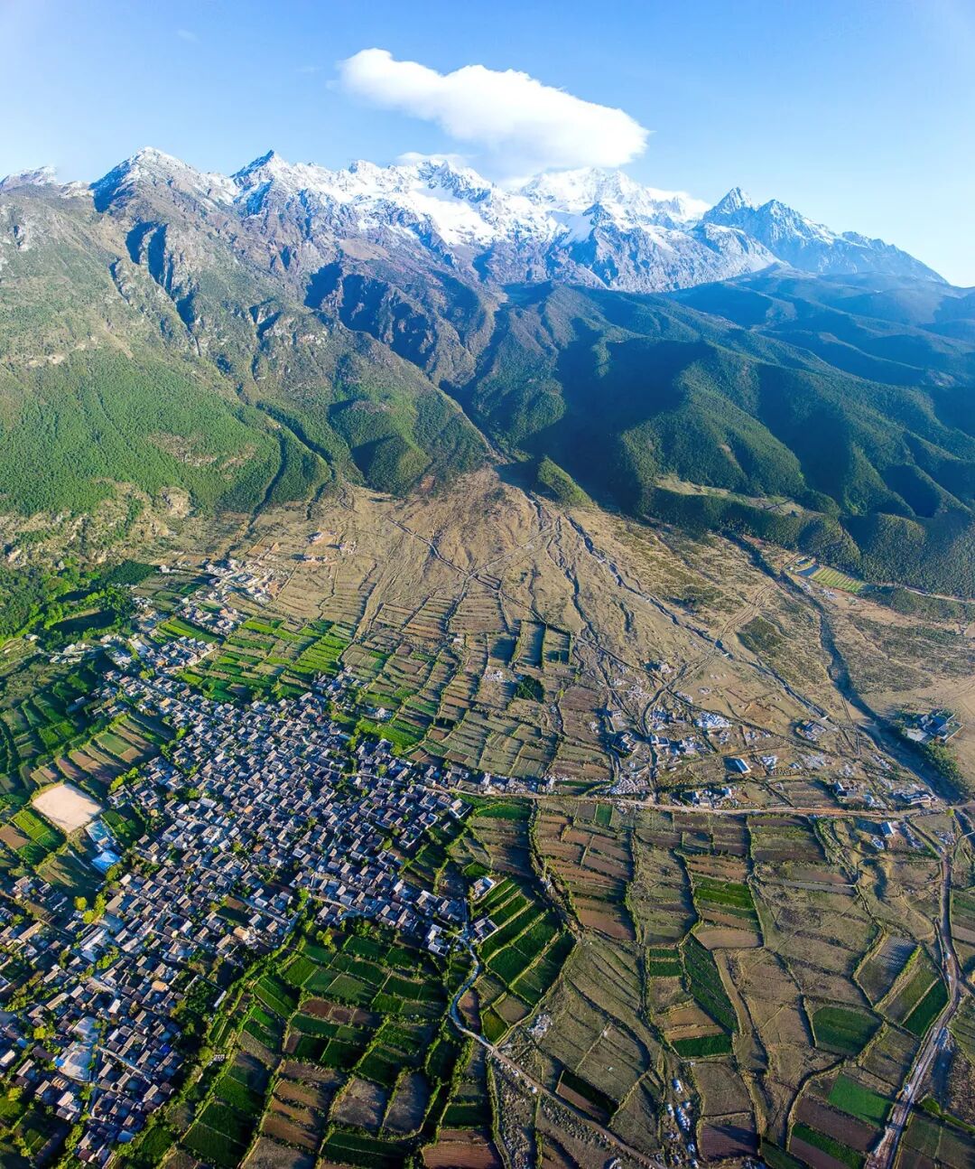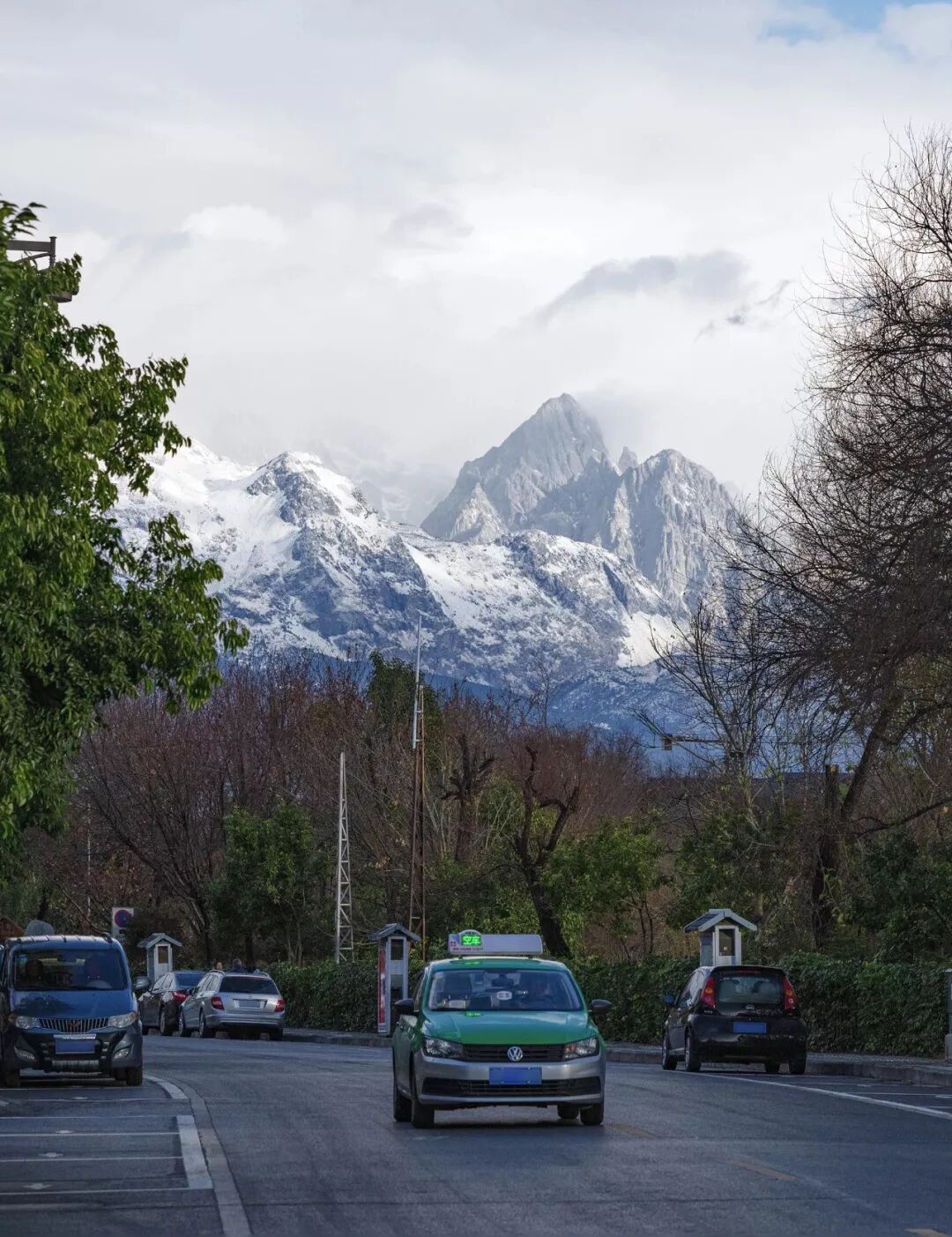 (古城中遥望玉龙雪山,摄影师@韩嘉)