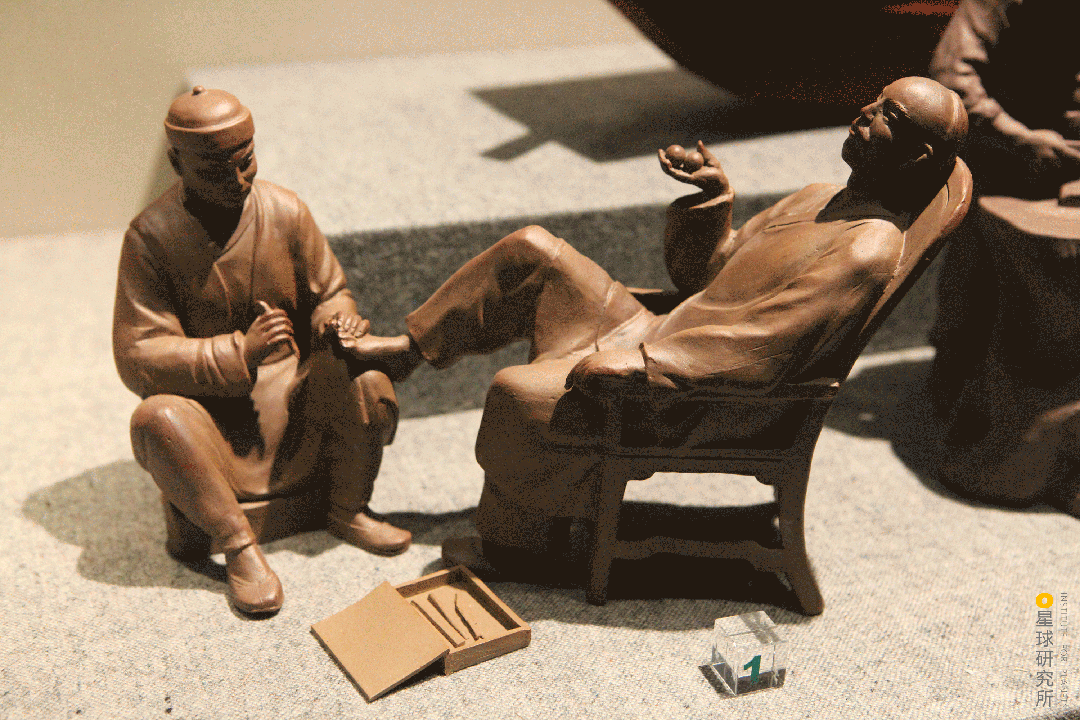 (扬州修脚场景的雕塑,图片来源@视觉中国,制图@阿土/星球研究所)