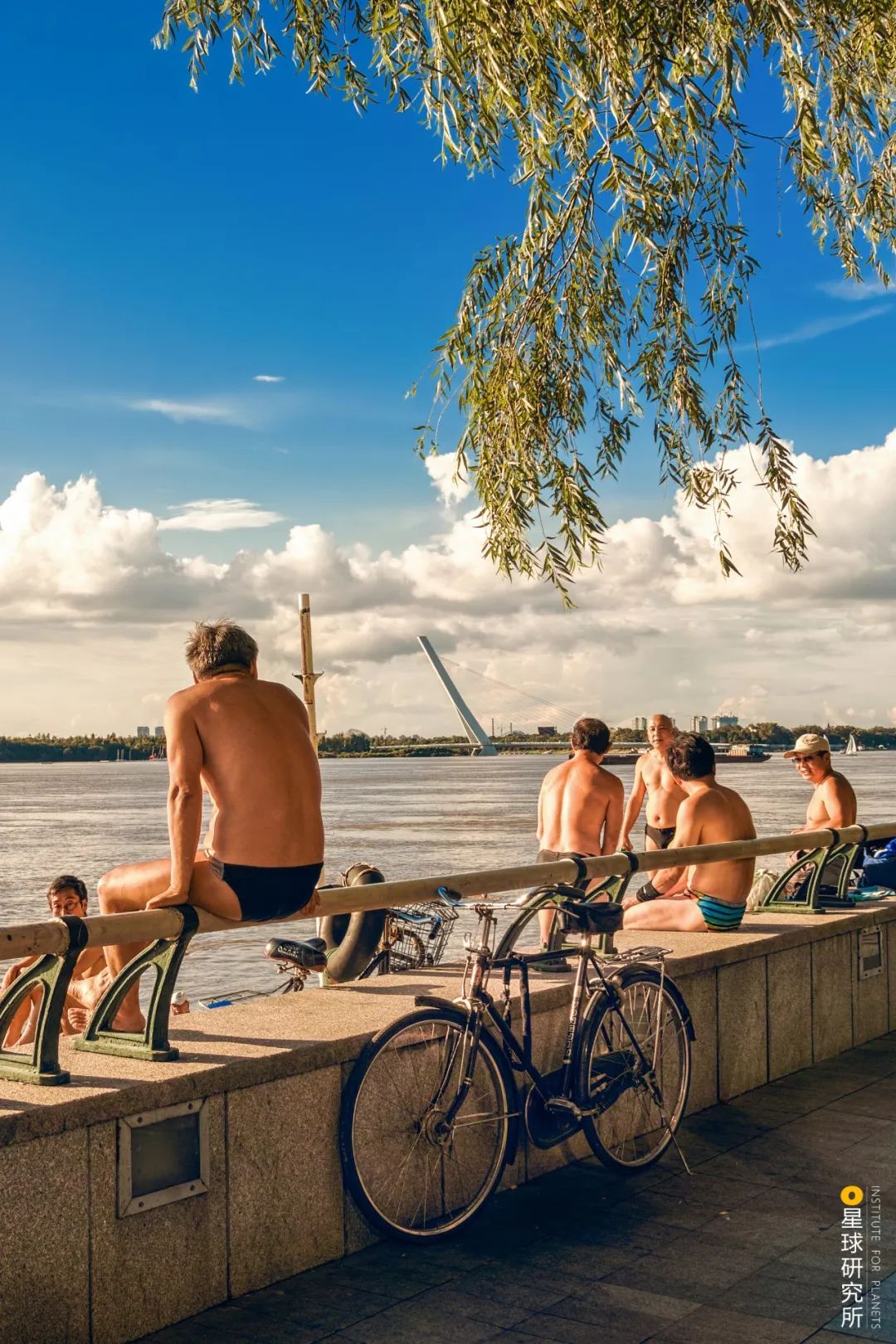 (夏日松花江畔乘凉、游泳的人们,摄影师@陈刚)