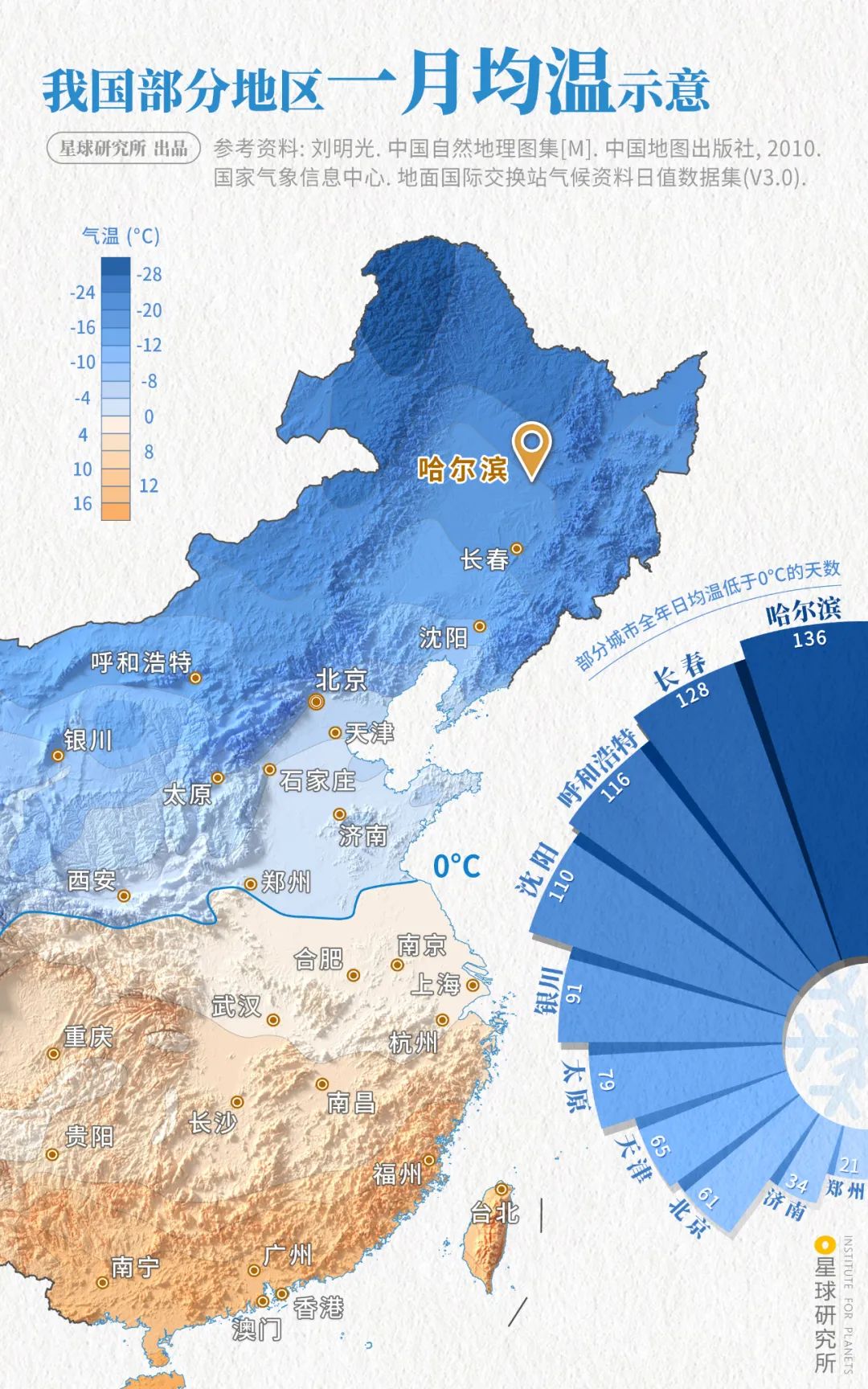 (我国部分地区一月均温示意,制图@周晋宇&汉青/星球研究所)