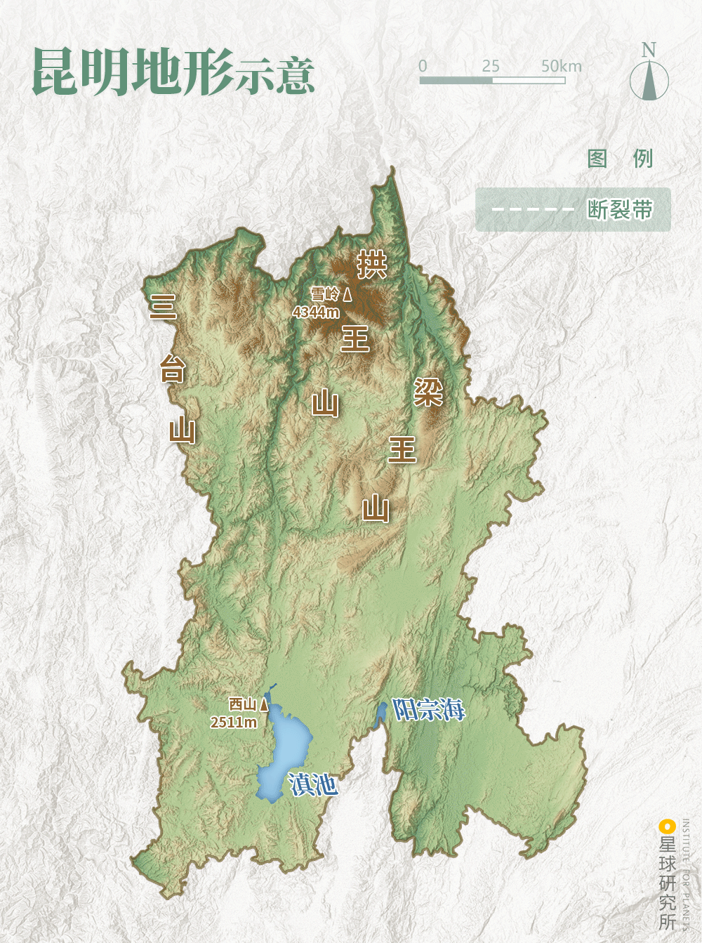 (昆明地形示意,制图@巩向杰&王申雯/星球研究所)