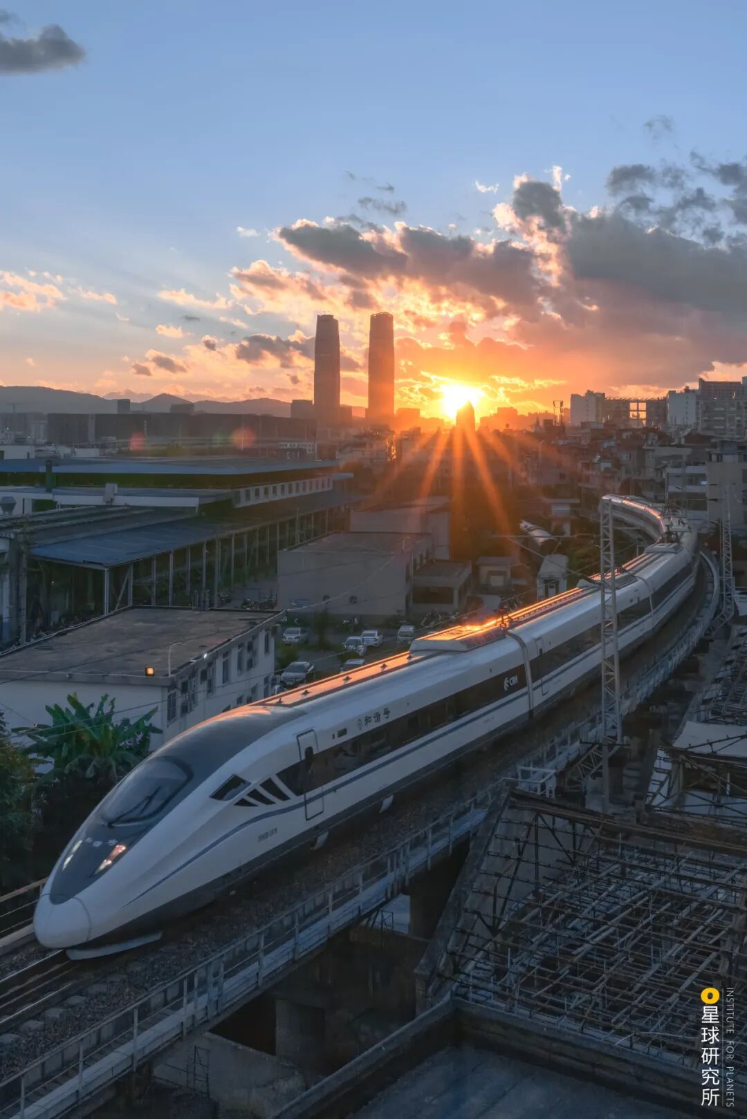 (高铁列车穿越城区,在夕阳下飞驰远去,摄影师@wzkdreram)