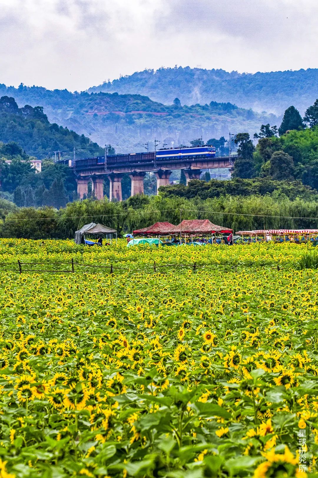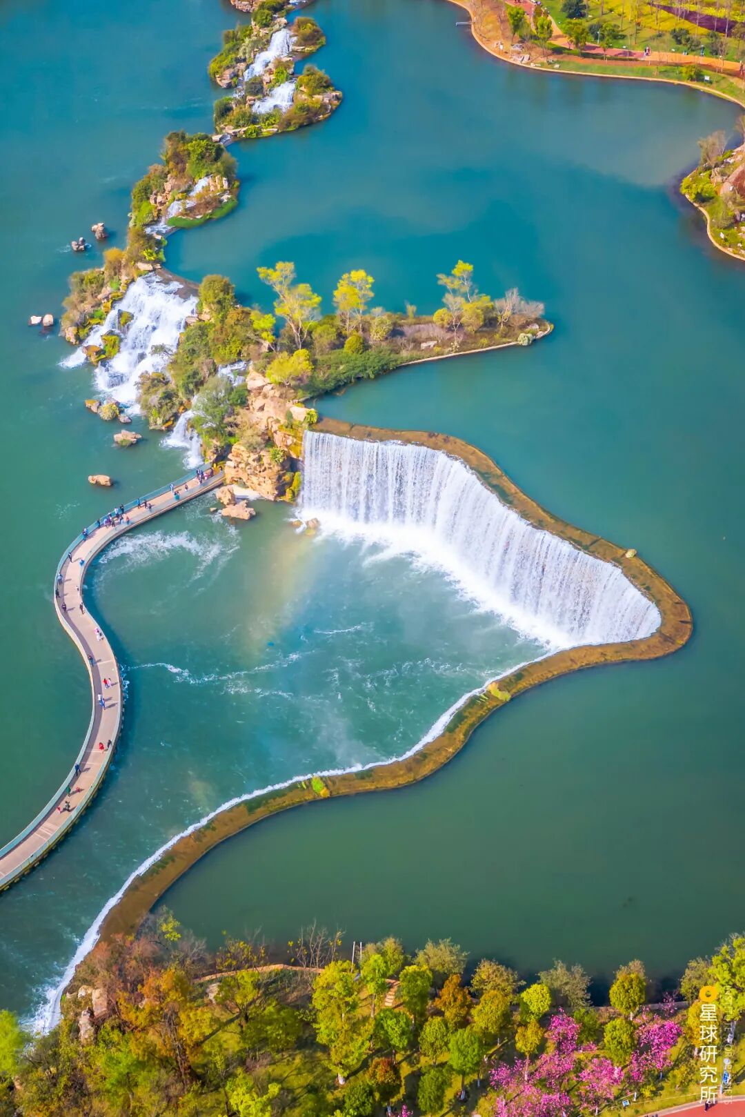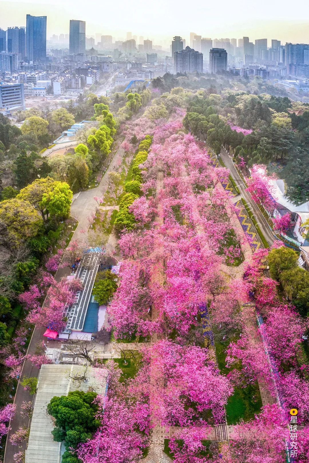 (上文引自明·杨慎《滇海曲》;下图左右滑动观看,①圆通山的樱花,摄影师@卢思璇;②晋宁昆阳街的蓝花楹,摄影师@段炳旭;③螳螂川旁的向日葵,摄影师@郑益)
