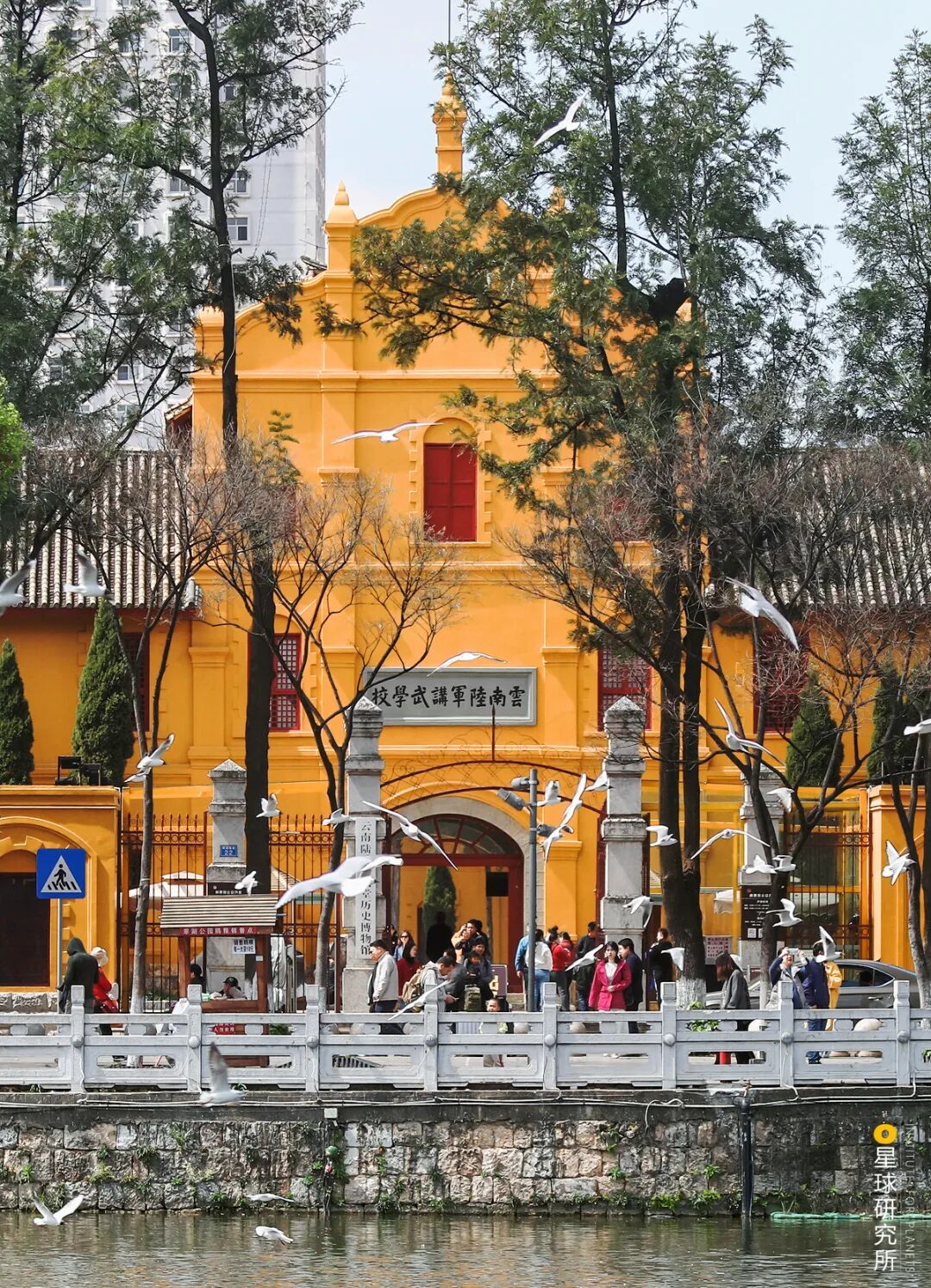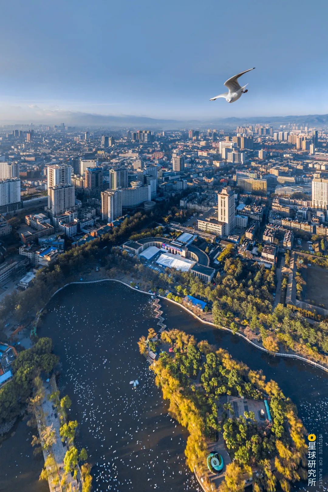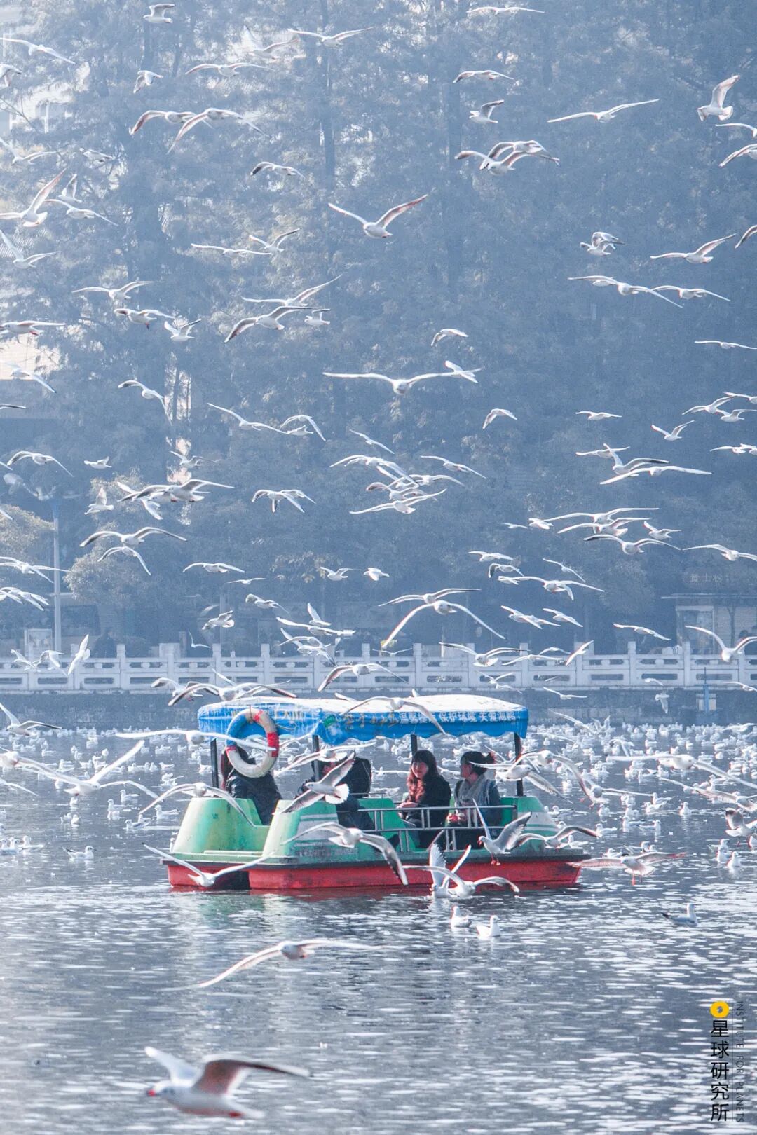 (1985年起,成群的红嘴鸥开始到昆明过冬,下图为翠湖上空的红嘴鸥,摄影师@苏剑飞)