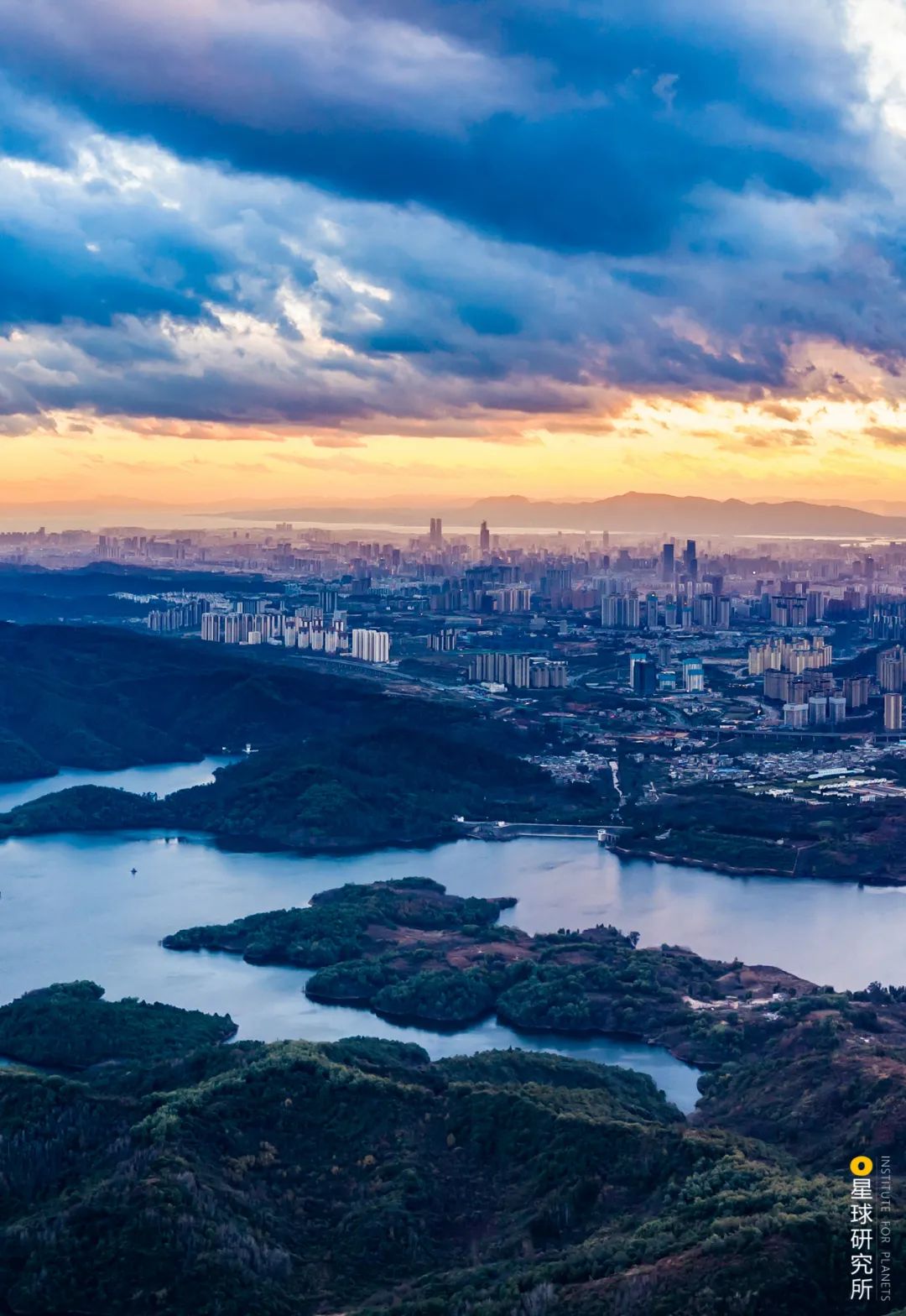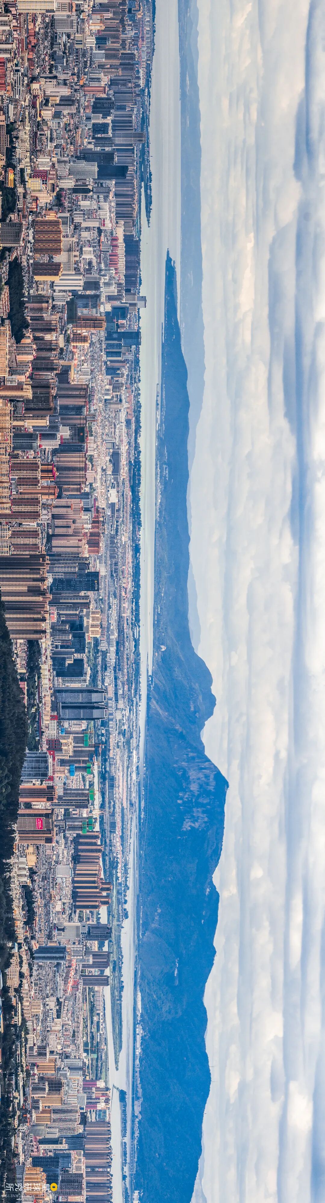 (请横屏观看,平坦的昆明坝子和陡峭的西山,在云南,周围较高、内部相对低平的小型盆地、河谷等都称为坝子,摄影师@山山)