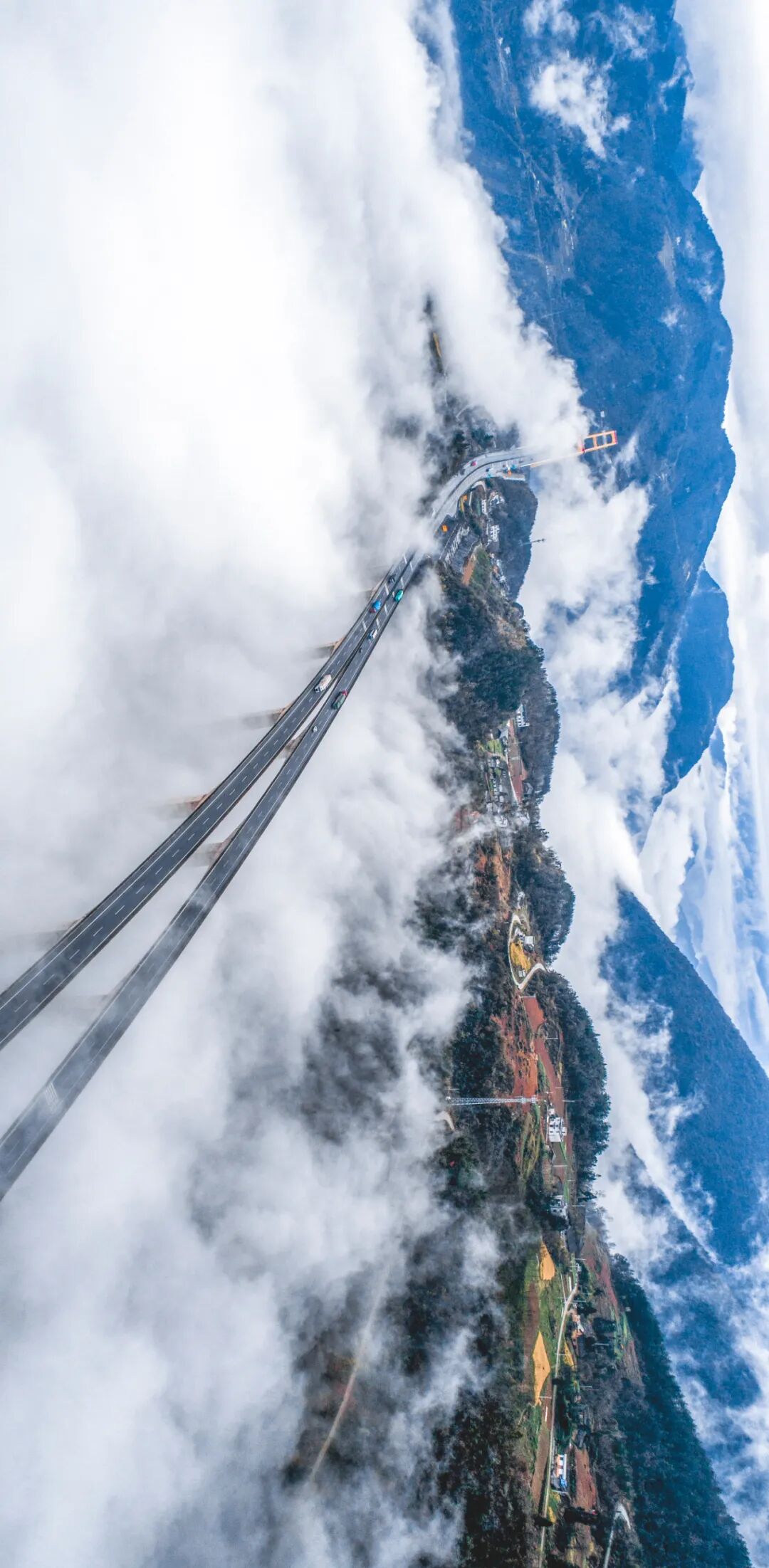 (请横屏观看,跨越天堑,摄于湖北巴东县境内沪渝高速公路四渡河特大桥,一场春雨过后云雾缭绕,宛若仙境,摄影师@文林)