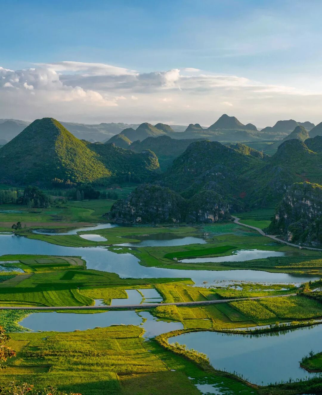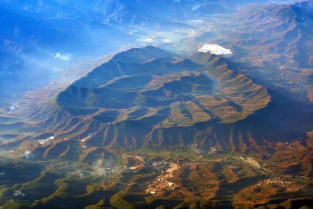(在云南,周围较高、内部相对低平的小型盆地、河谷等都称为坝子;下图为楚雄禄丰县恐龙山镇坝子地貌,坝子内部的水库名为中山水库,摄影师@老J)