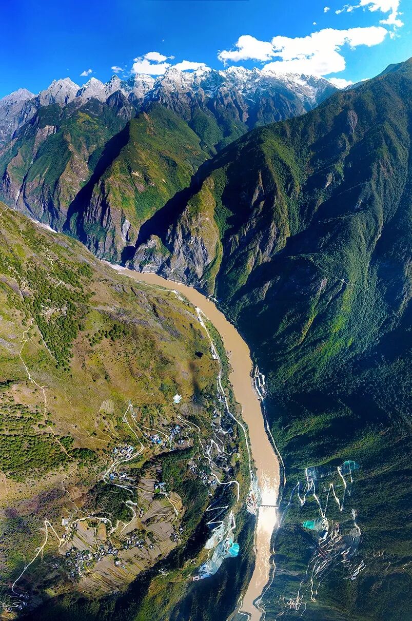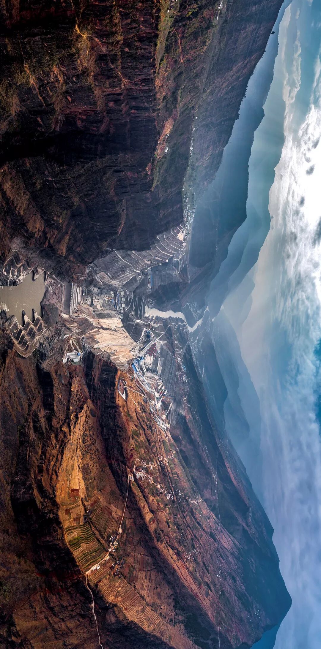(请横屏观看,建设中的白鹤滩电站,昭通市巧家县,建成后将成为仅次于三峡水电站的中国第二大水电站,摄影师@柴峻峰)