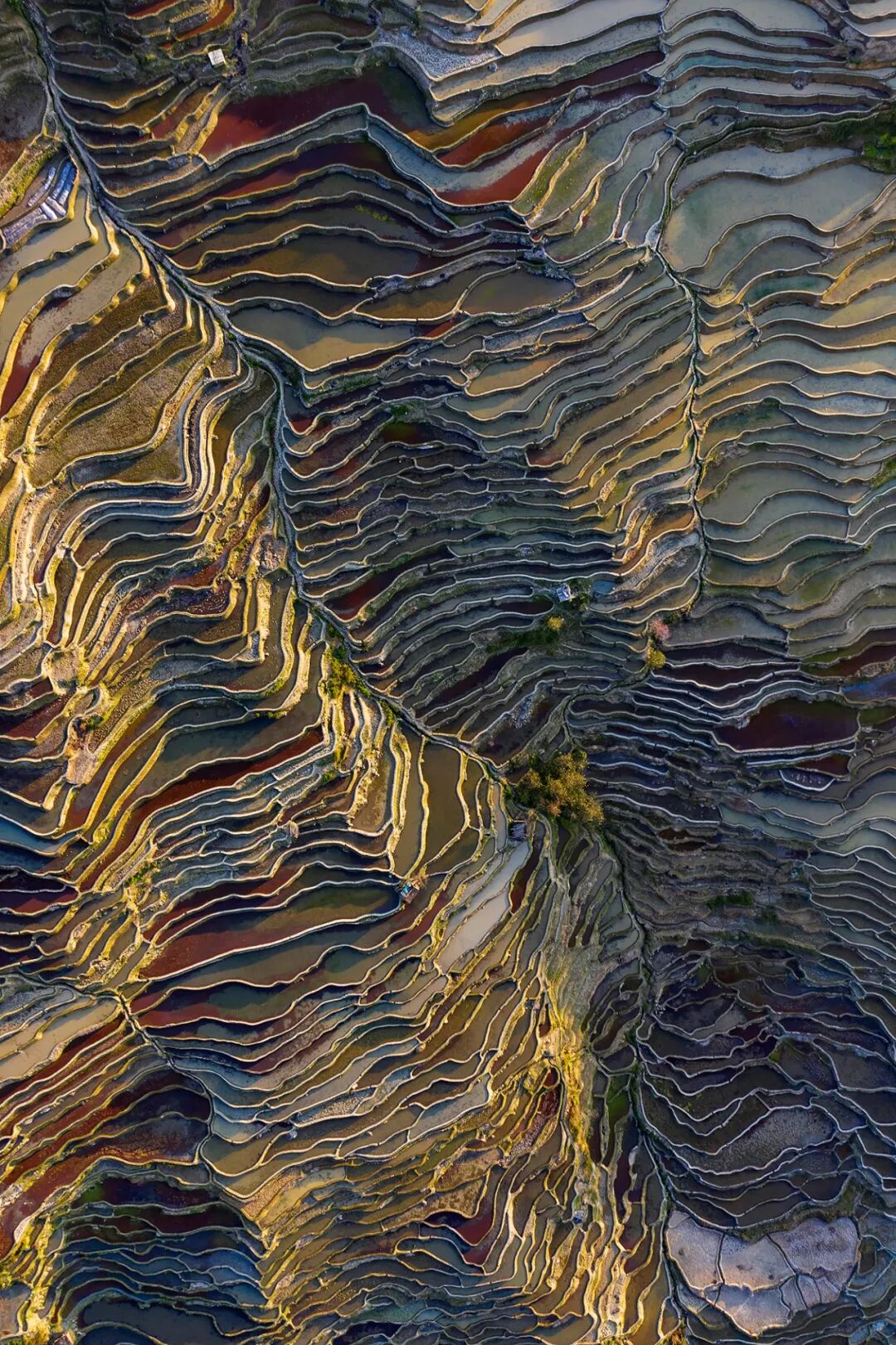 (哈尼梯田,哀牢山区的民族大致按海拔高低分层而居,哈尼族多居住在半山腰,因此创造出了发达的梯田耕作体系,摄影师@刘珠明)